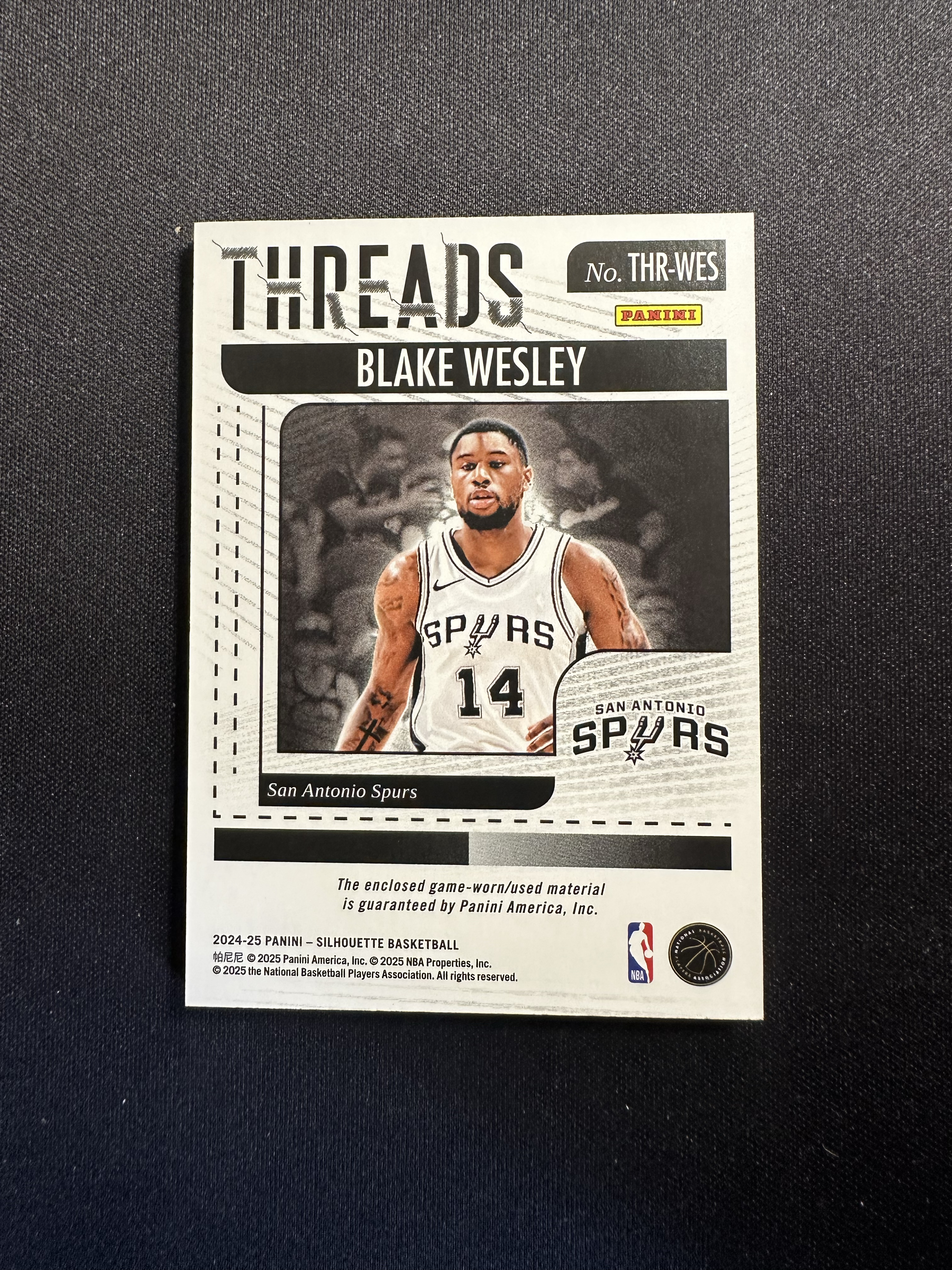 2024-25 Panini Silhouette Blake Wesley 剪影 马刺 布莱克·韦斯利 球衣切割 Gu落场 实卡精美 卡品如图 【mark】