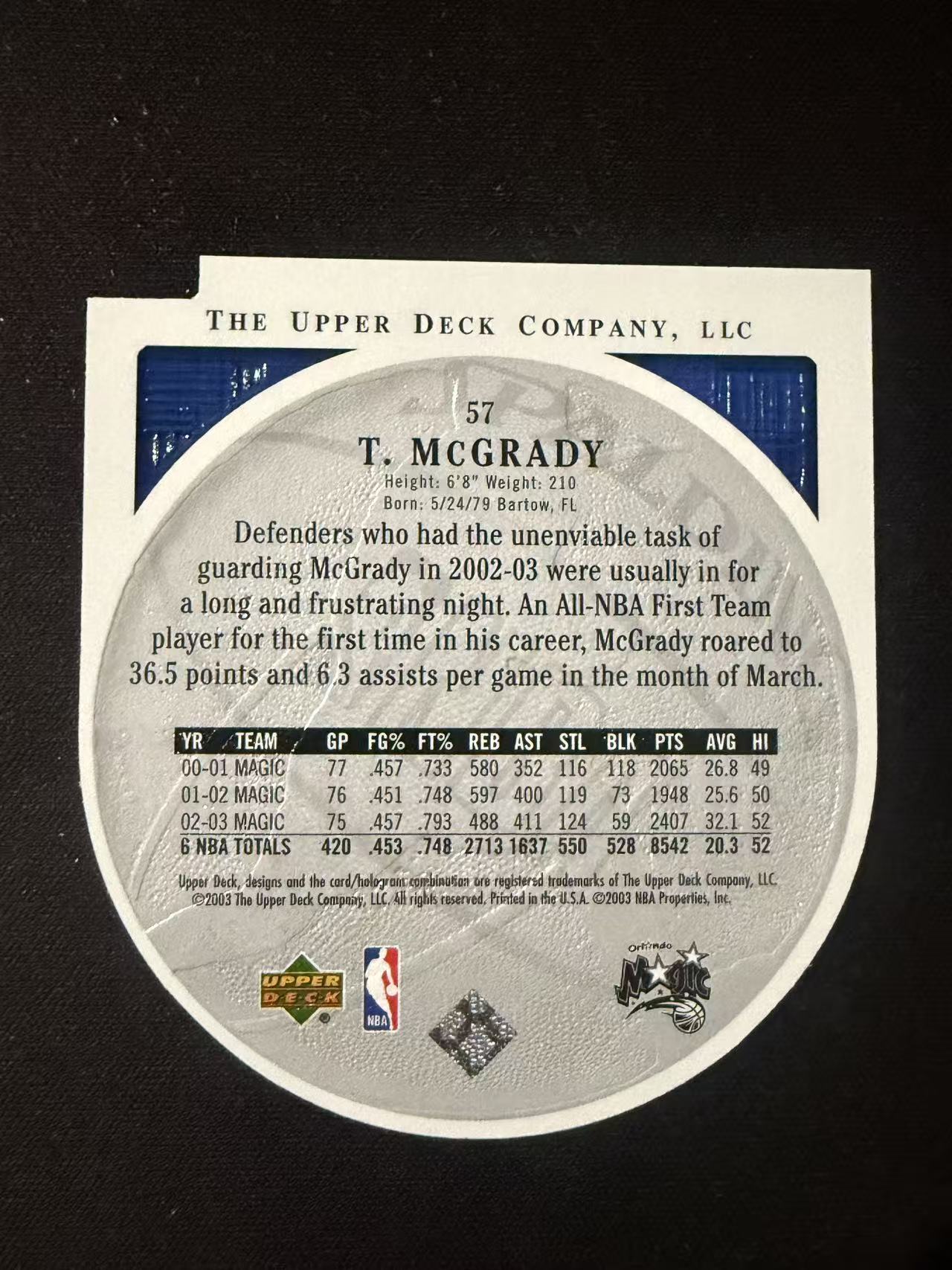 2003 Upper Deck Standing "O" Tracy McGrady 【大锦拍卖】魔术 特雷西 麦克格雷迪 麦迪 UD 异形 特卡 卡品如图(星球)
