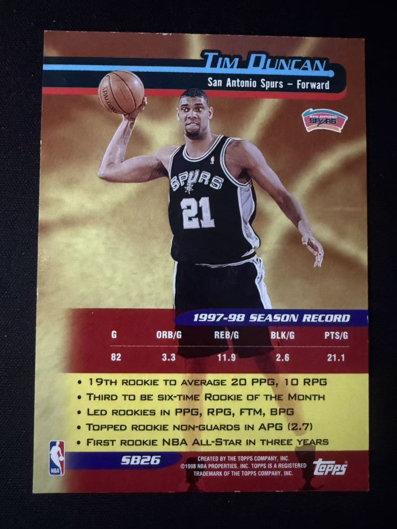 1997-98 Topps Chrome Tim Duncan 【大锦拍卖】马刺 蒂姆 邓肯 石佛 NEWCOMERS 折射 卡品如图(星球)