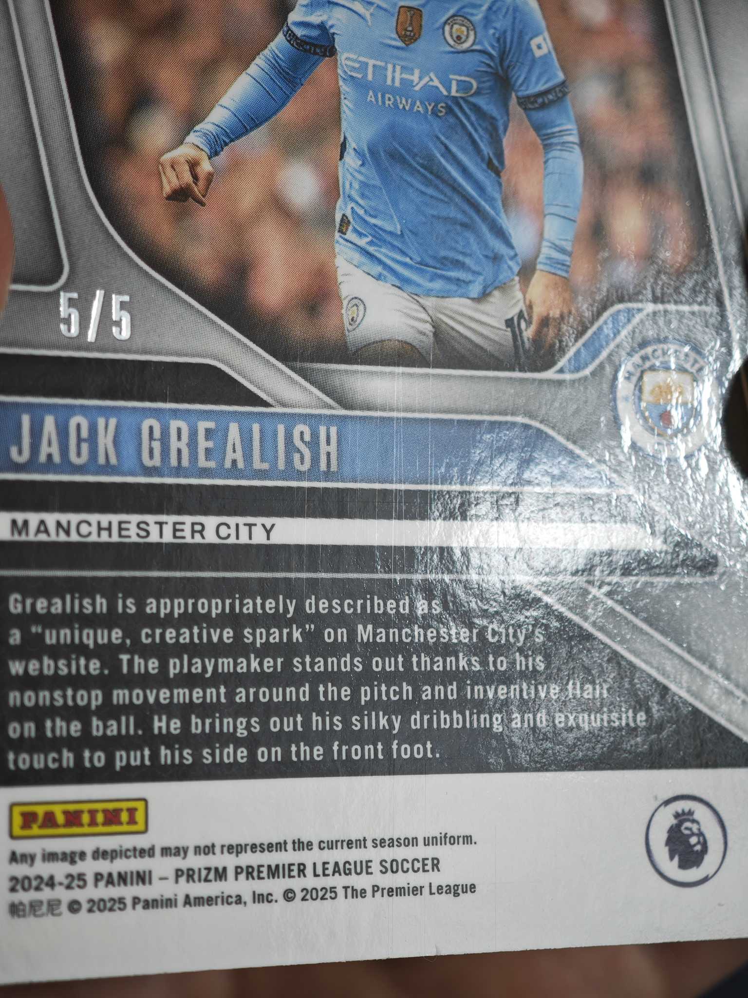 2024-25 Panini Prizm Jack Grealish 【小灰机】英超 杰克 格拉利什 曼城 5/5编 绿折 加法同背 低编 卡品如图 蓝月亮 摇子 太妃糖 状态复苏 瑕疵如图 老Q