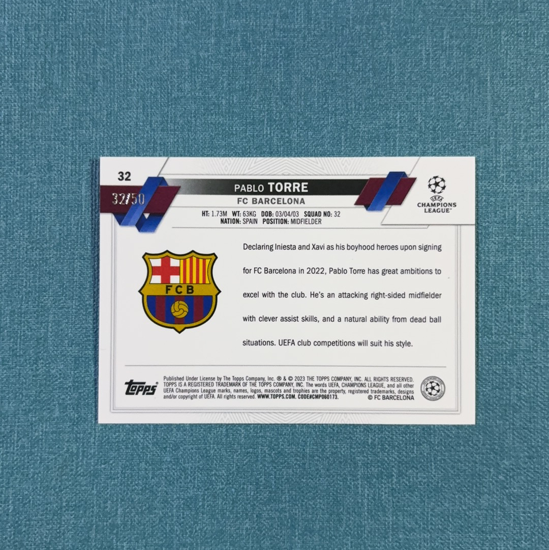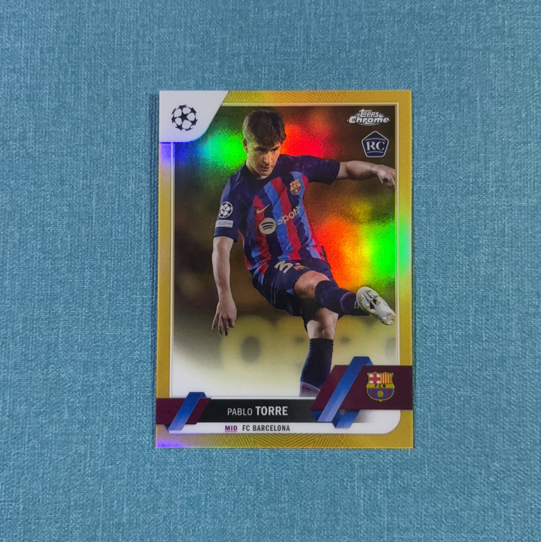 2022-23 Topps Chrome 欧战 Pablo Torre 巴勃罗 托雷 32/50编 新秀 RC 同背 金折 巴塞罗那 巴萨 卡品如图 GCX