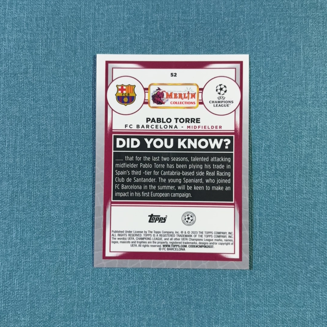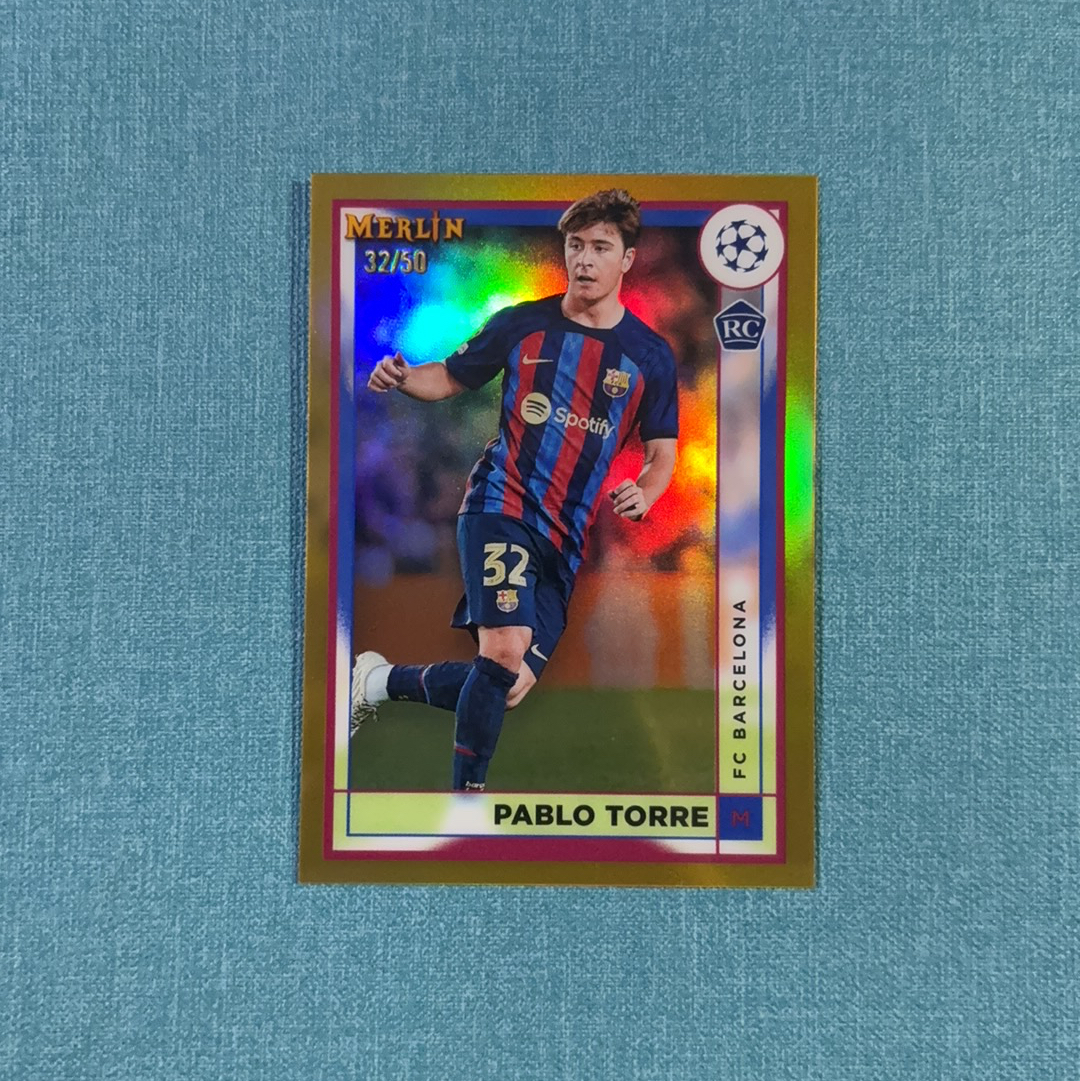 2022-23 Topps Merlin 欧战 梅林 Pablo Torre 巴勃罗 托雷 32/50编 新秀 RC 同背 金折 巴塞罗那 巴萨 卡品如图 GCX