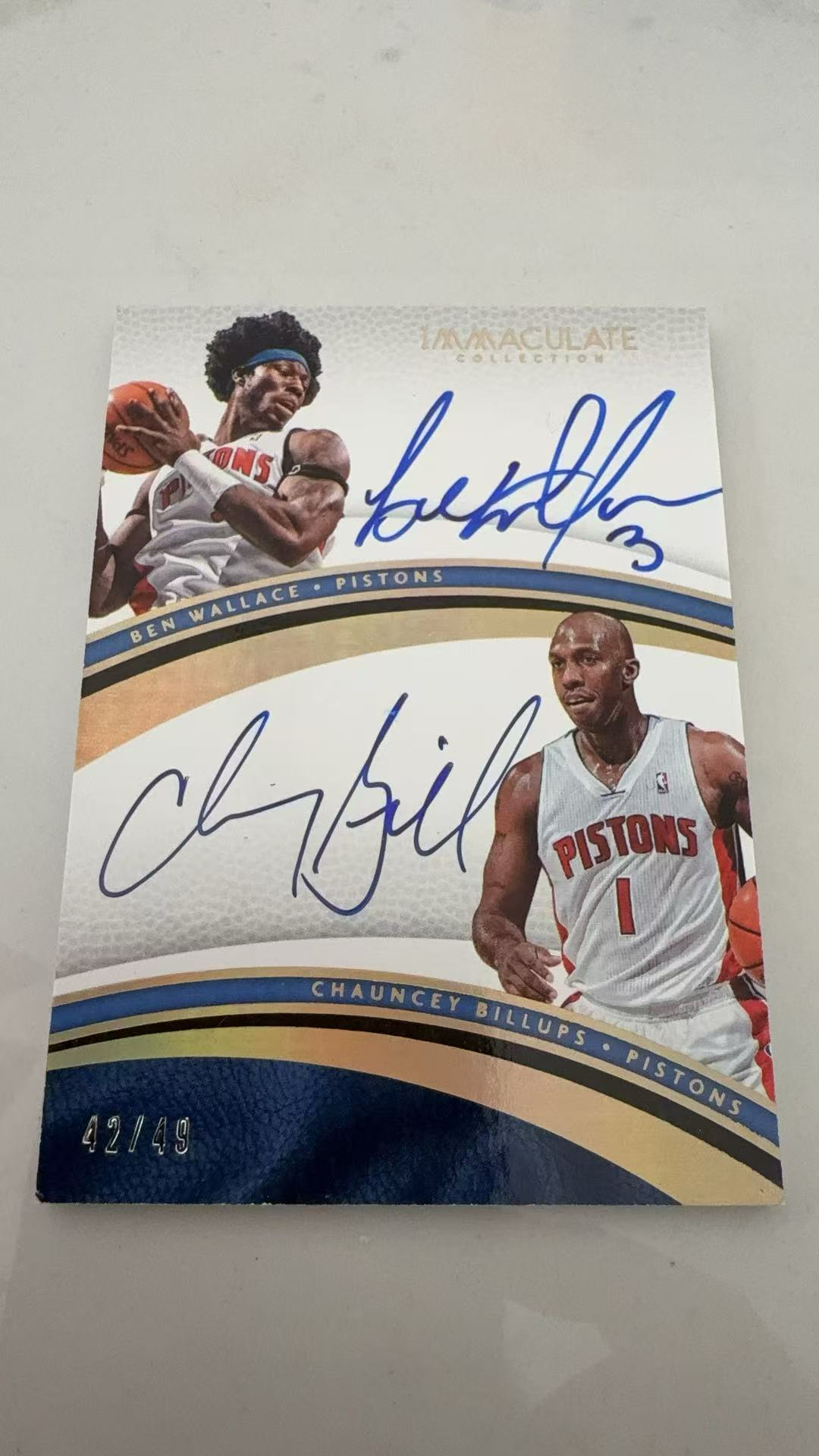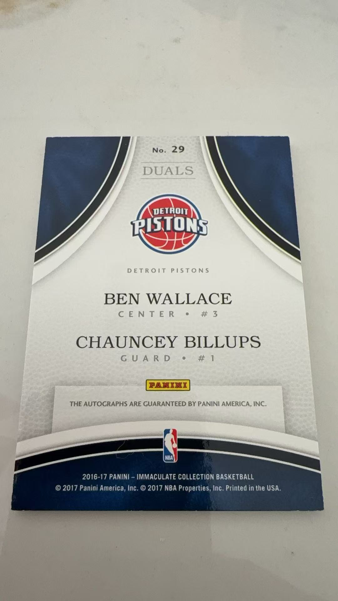 2016-17 Panini Immaculate Collection Ben Wallace 活塞 本 华莱士 比卢普斯 活塞总冠军双人组 42/49编 系列hit 卡签 签字 通行卡品 凑套必备