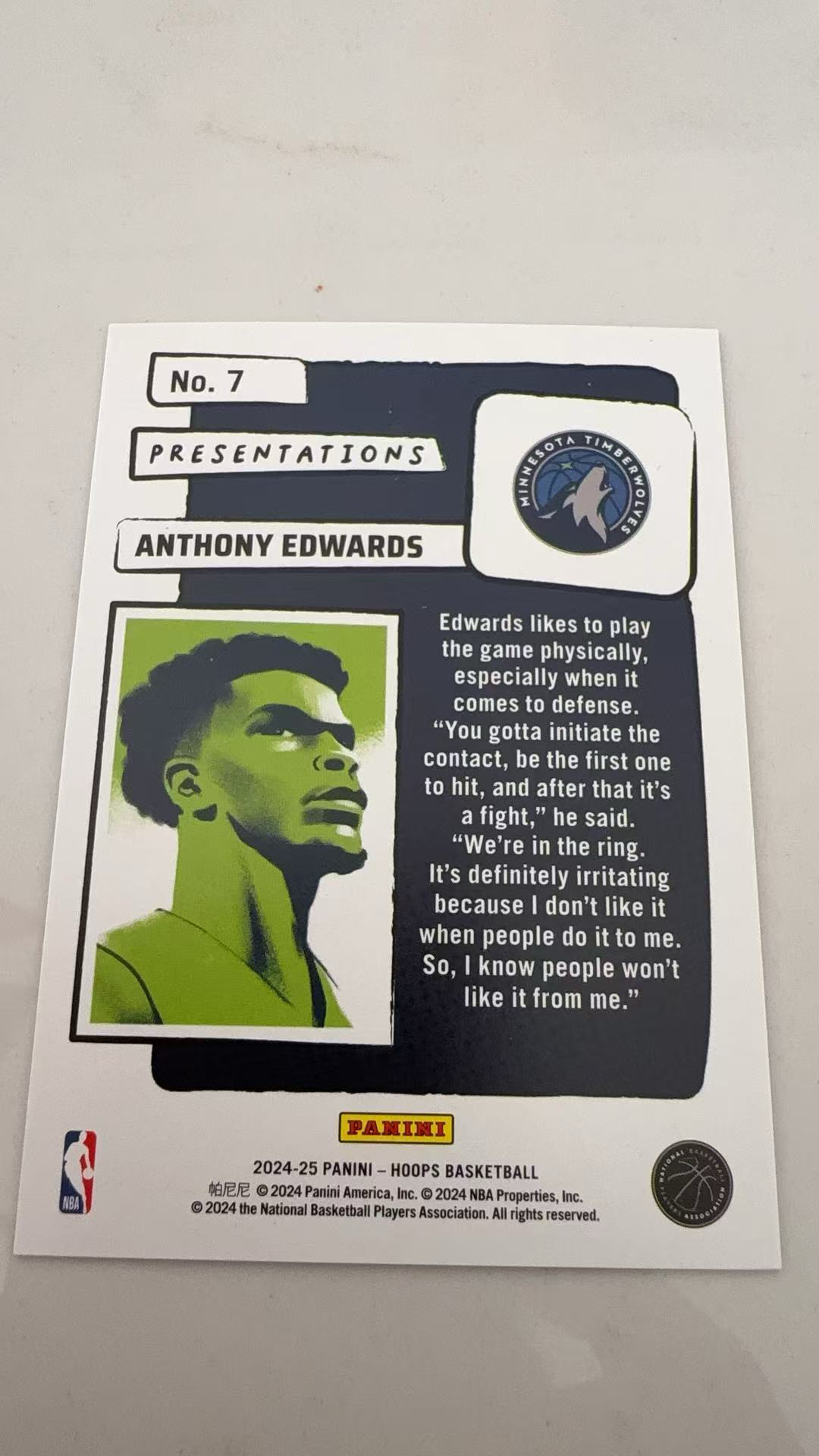 2024-25 Panini NBA Hoops Anthony Edwards 森林狼 爱德华兹 大比例SSP 漫画 大头 折射 通行卡品 收藏凑套必备 库里 字母哥 亚历山大 詹姆斯