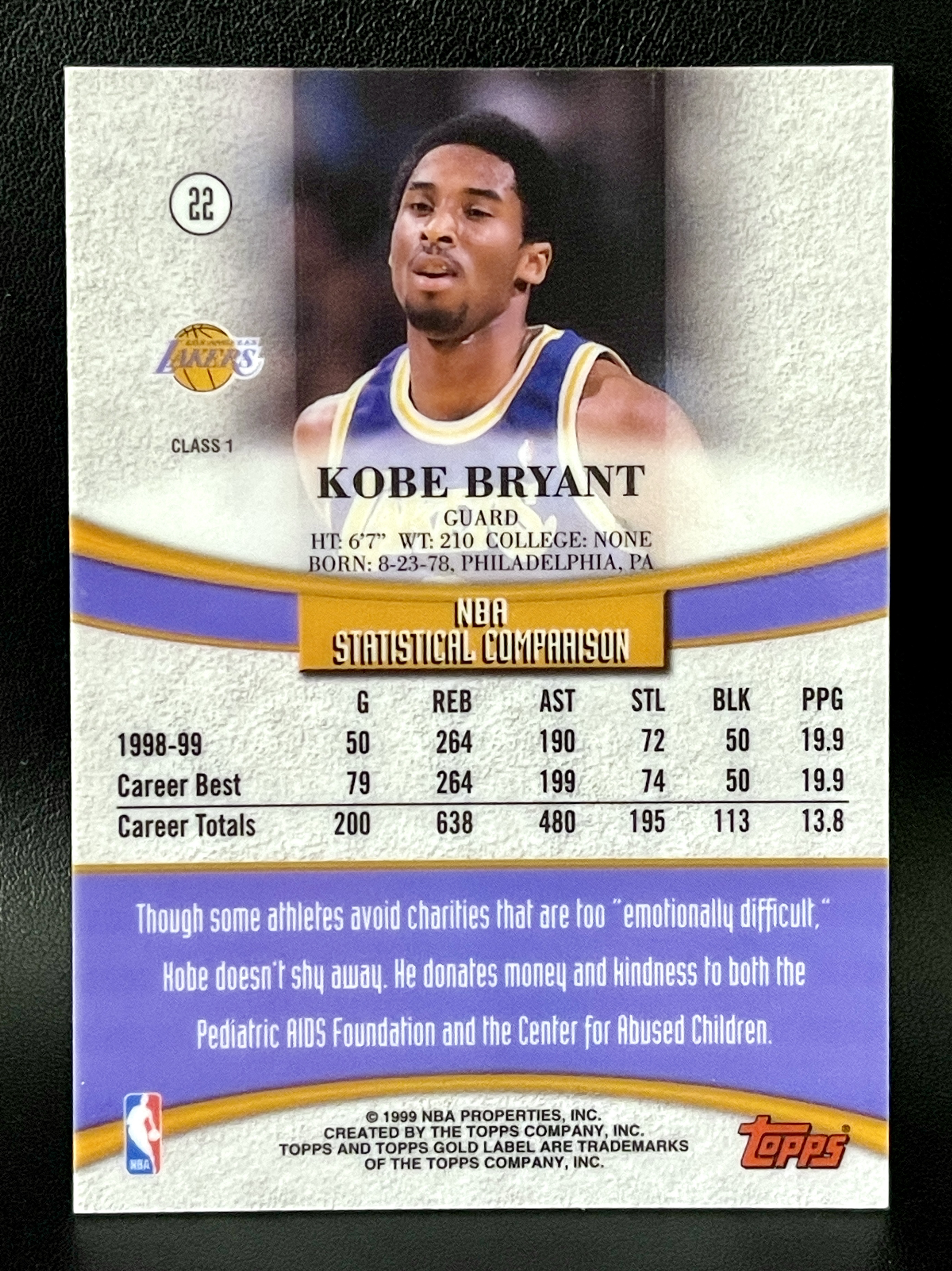 科比布莱恩特 黑曼巴 1999-00 Topps Gold Label 金标系列 金折 折射 非常经典的特卡 湖人传奇 四大分卫 卡品如图