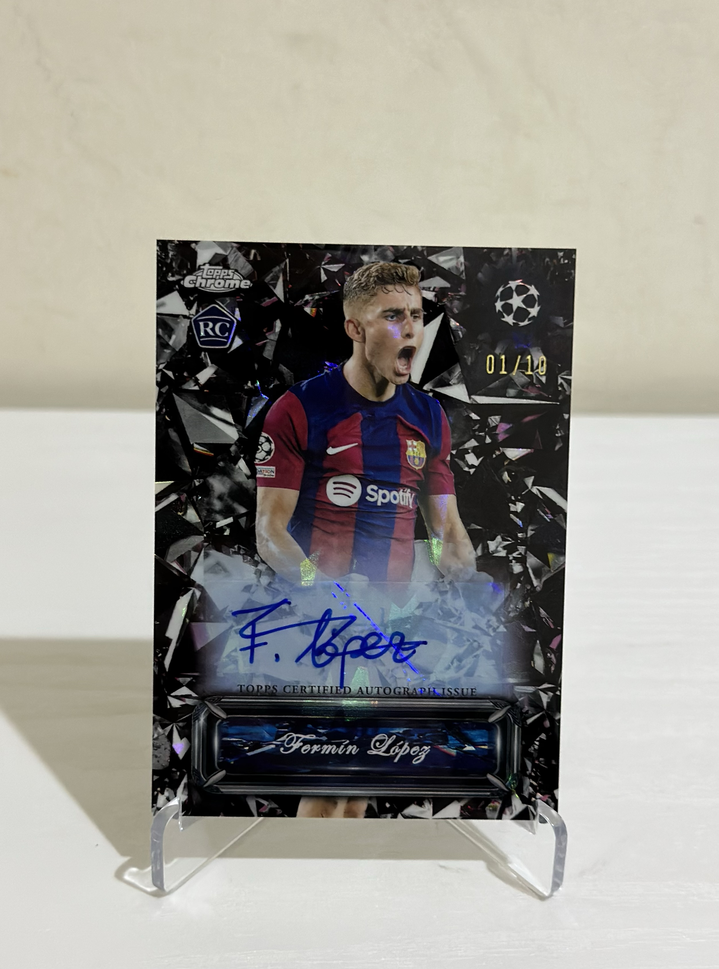 2023-24 Topps Chrome Fermín López RC 蓝宝石 费尔明 洛佩斯 巴萨 欧冠 新秀 签字 1/10编 首编约等于1/1 大比例精选特卡 黑碎冰 亚马尔队友 默认微瑕