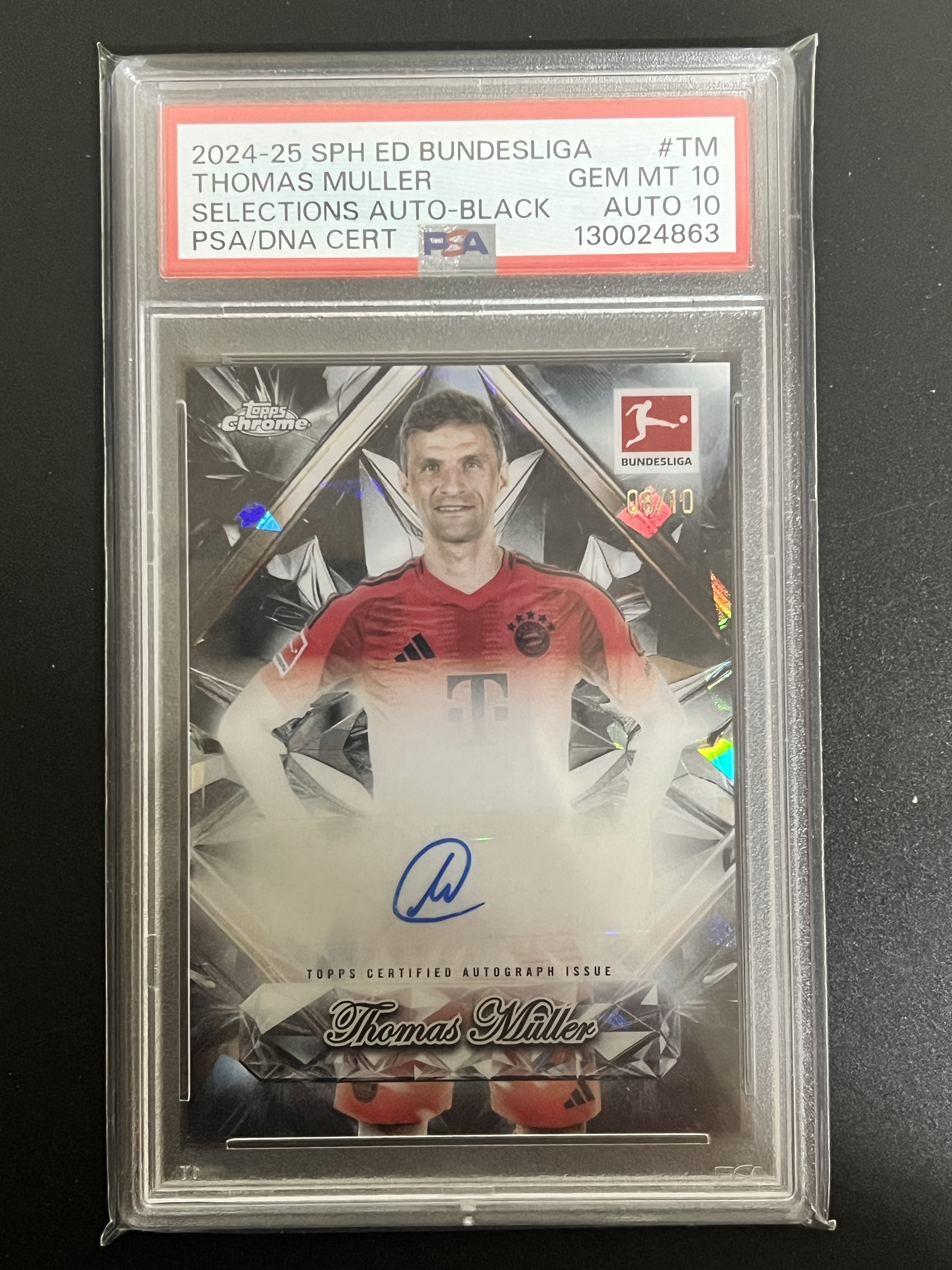 2024-25 Topps Chrome Thomas Muller 德甲TC 蓝宝石 拜仁慕尼黑 托马斯 穆勒 签字 精选签 黑宝石 黑碎冰折 8/10编 PSA10/10分 双 10分 收藏必备