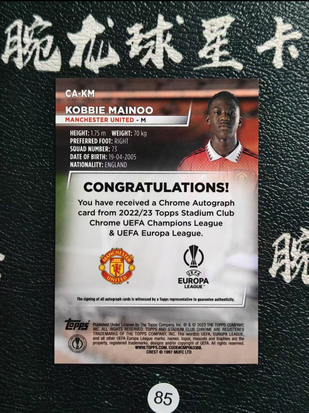 2023 【腕龙拍卖 接代卖】 腕龙茹泽群AR3 Topps Stadium Club 欧冠 竞技场 科比 梅努 曼联 英格兰 RC新秀 银折签 签字 墨迹如图 KOBBIE MAINOO 卡品如图