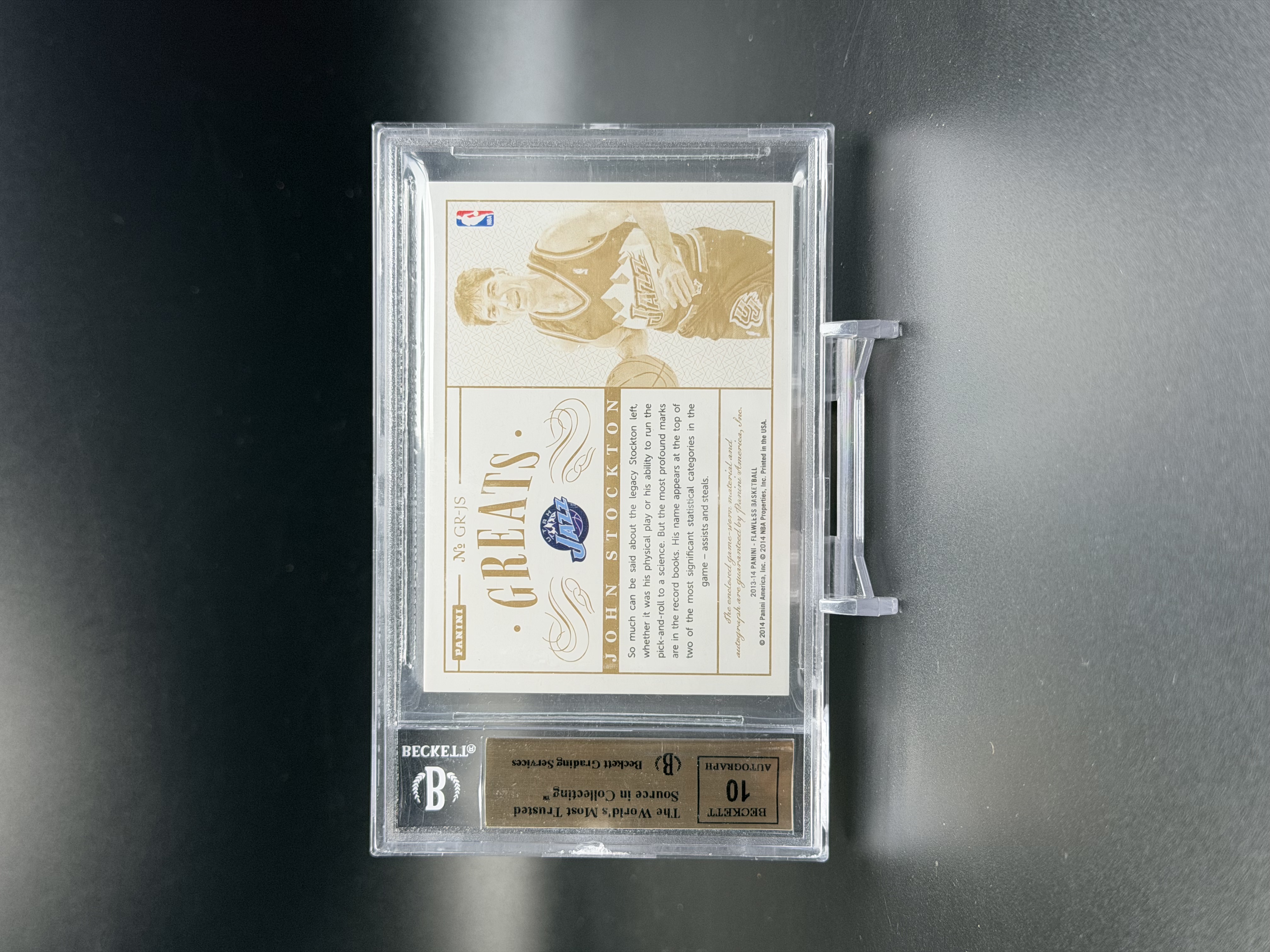 【咔嚓】2013 Panini Flawless John Stockton 爵士 约翰 斯托克顿 15编 手提签字卡签 腰子 BGS9.5签字10 金标 壳损如图 patch 星爷