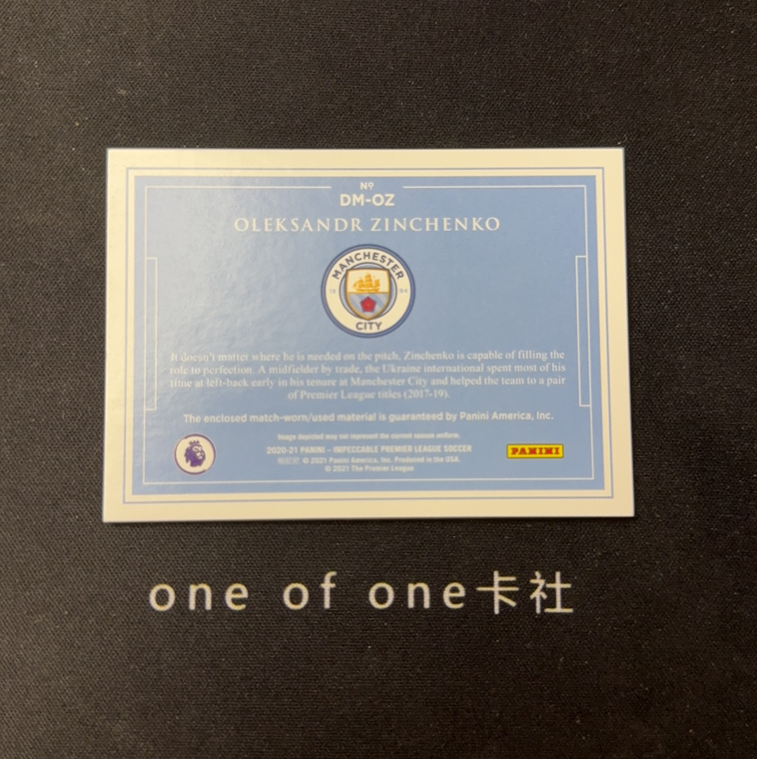 2021 panini impeccable英超小真金曼城 阿森纳 乌克兰 津琴科Zinchenko 双窗 patch物料暴力切割 99编 卡品如图