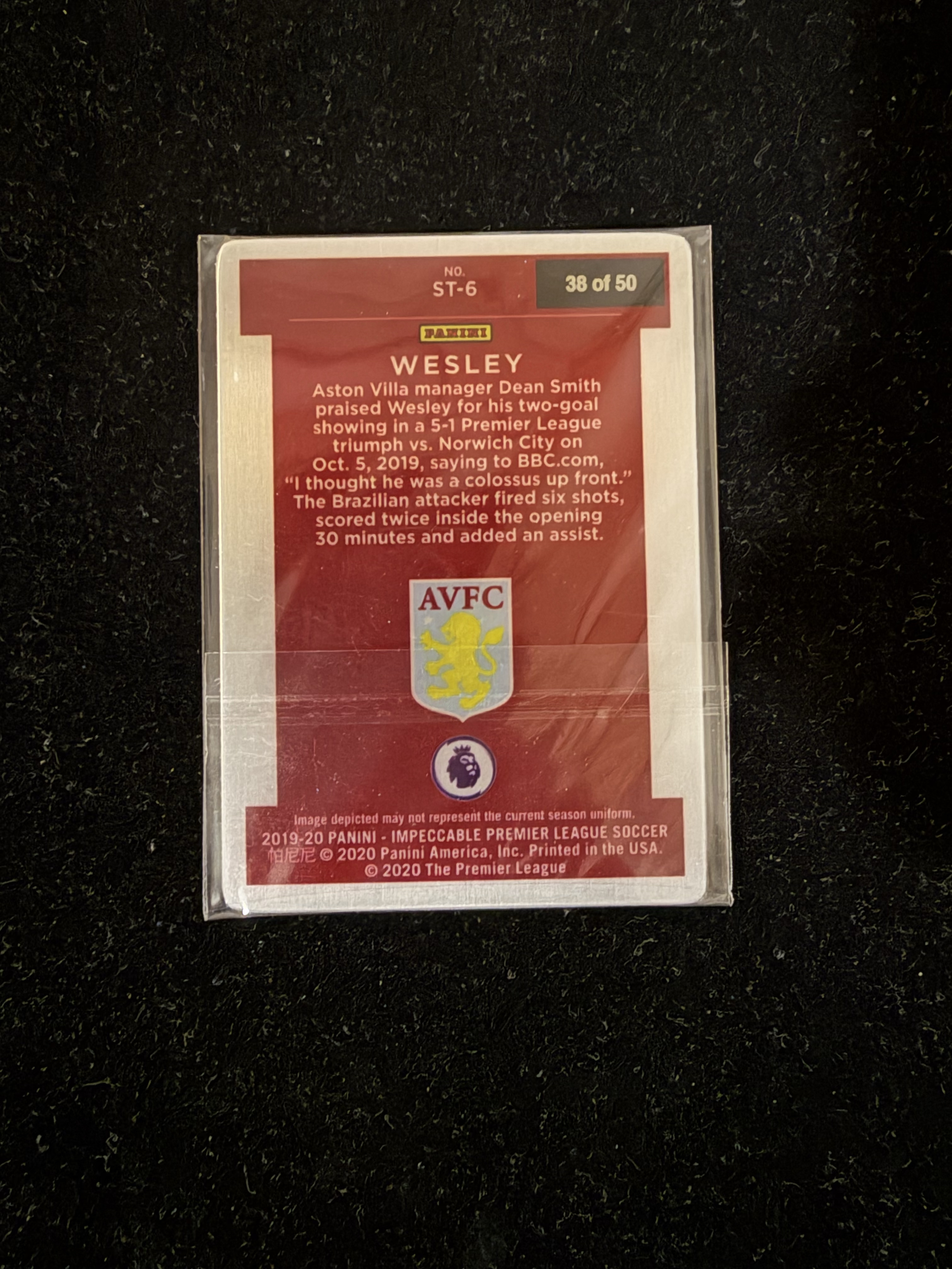 2019 Panini Impeccable Wesley RC 欧冠 韦斯利 38/50编 铁板 布鲁日 阿斯顿维拉 Brugge 深圳 中超 巴西 Brazil 世界杯