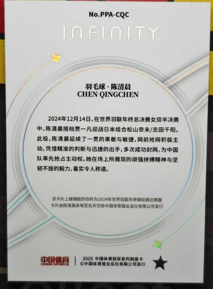 2025 奇卡 QICA 无限 冠军 中国体育 羽毛球 陈清晨 镭射银 18/25编 行星签字 卡签 实物签字卡 元年 奥运会冠军 世界冠军
