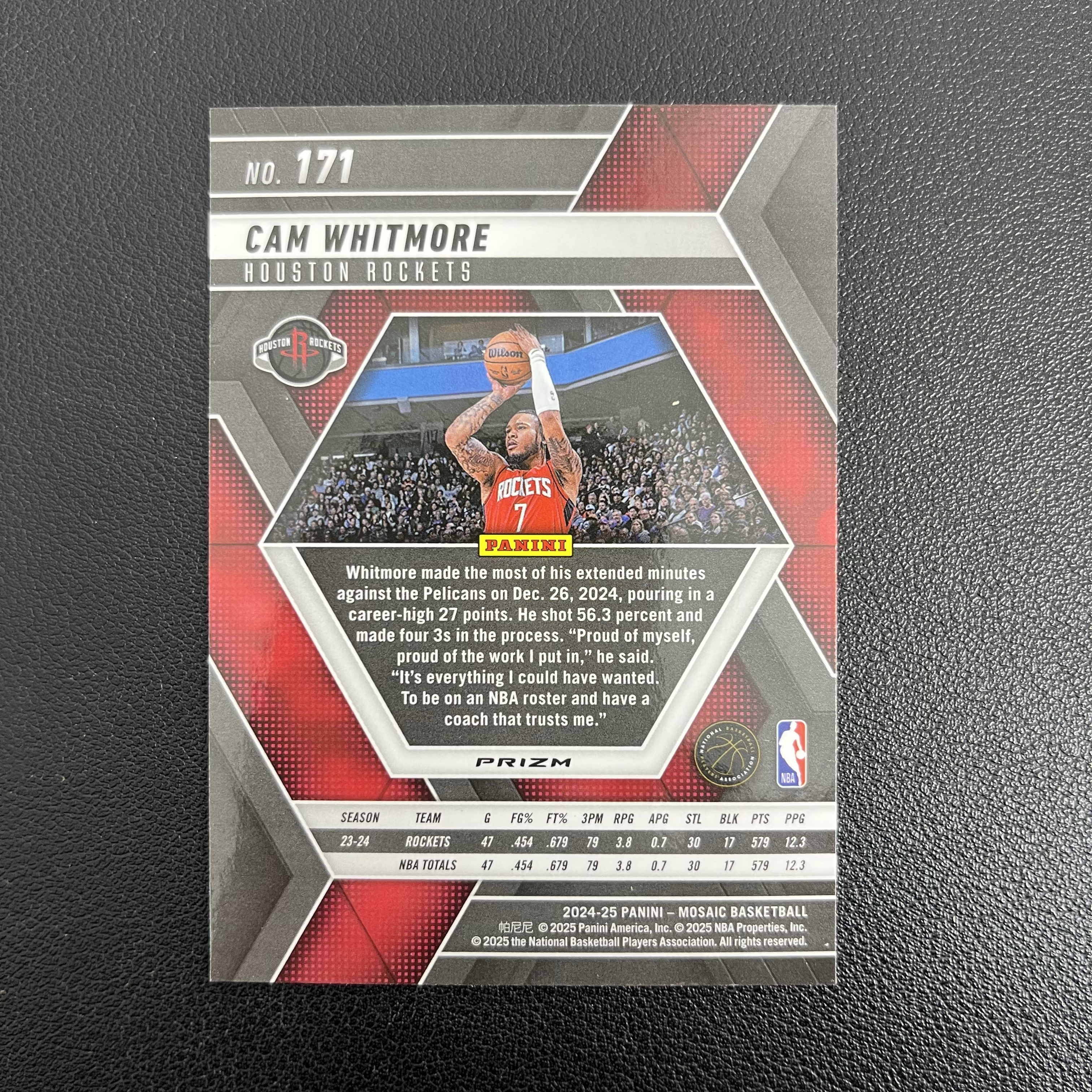 2024-25 Panini Mosaic Cam Whitmore 卡姆 惠特摩尔 惠特莫尔 火箭 马赛克系列 大比例 起源折 折射 实卡精美 收藏必备 卡品如图(伟)