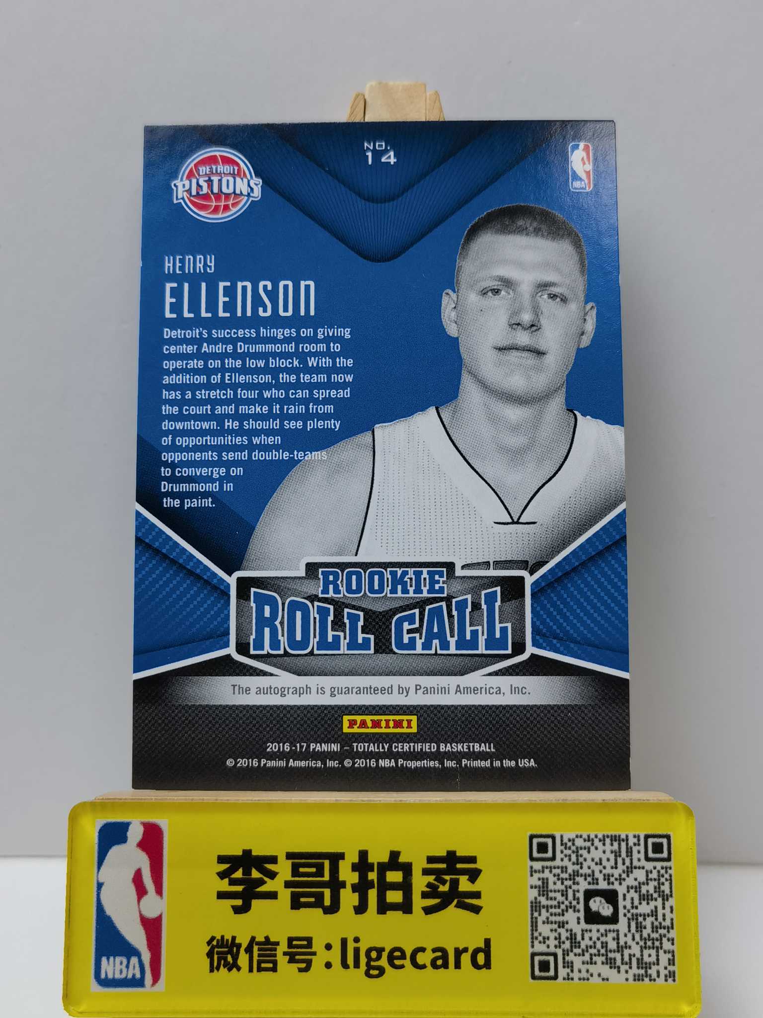 2016-17 Panini Totally Certified Henry Ellenson 【李哥代卖】卫生巾 亨利埃伦森 新秀 签字 活塞 Guo1127