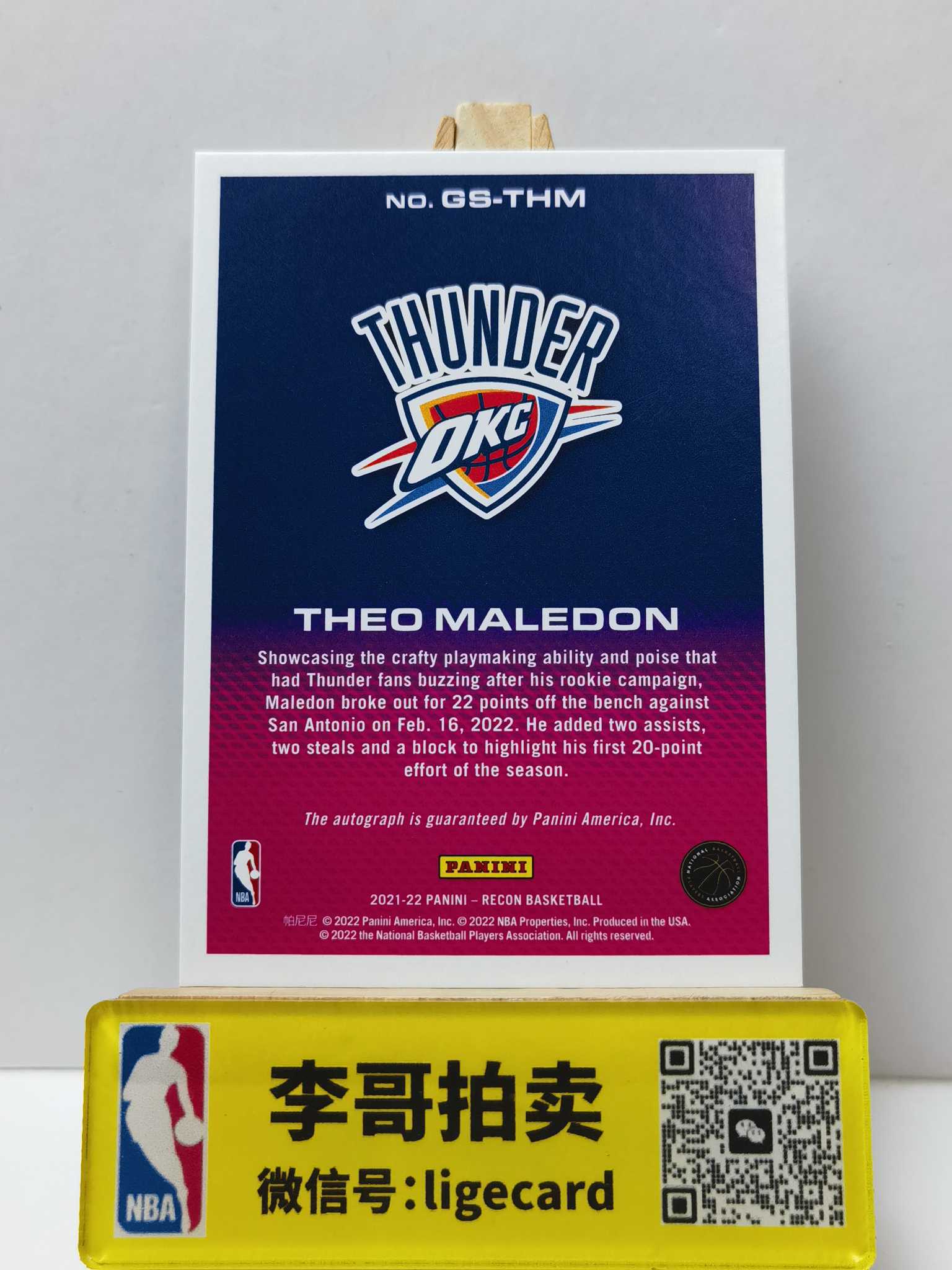 2021-22 Panini Recon Theo Maledon 【李哥代卖】西奥马勒东 签字 99编 雷霆 Guo1127