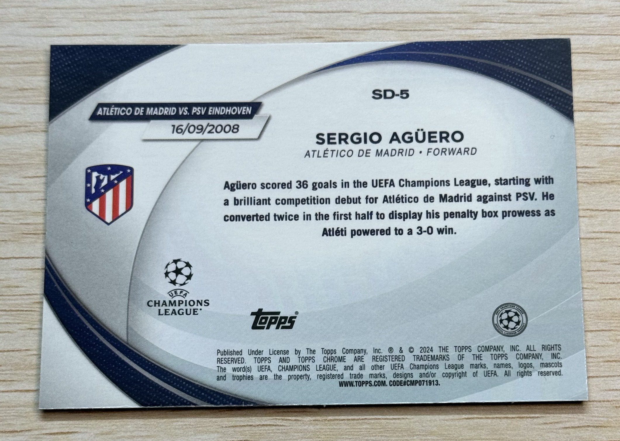 2024 Topps Chrome TC欧冠 Sergio Agüero 阿圭罗 阿奎罗 马竞 曼城 阿根廷🇦🇷 金熔岩折 折射 约等于50编 大比例SP 首秀特卡 凑套必备 收藏必备 不保卡品