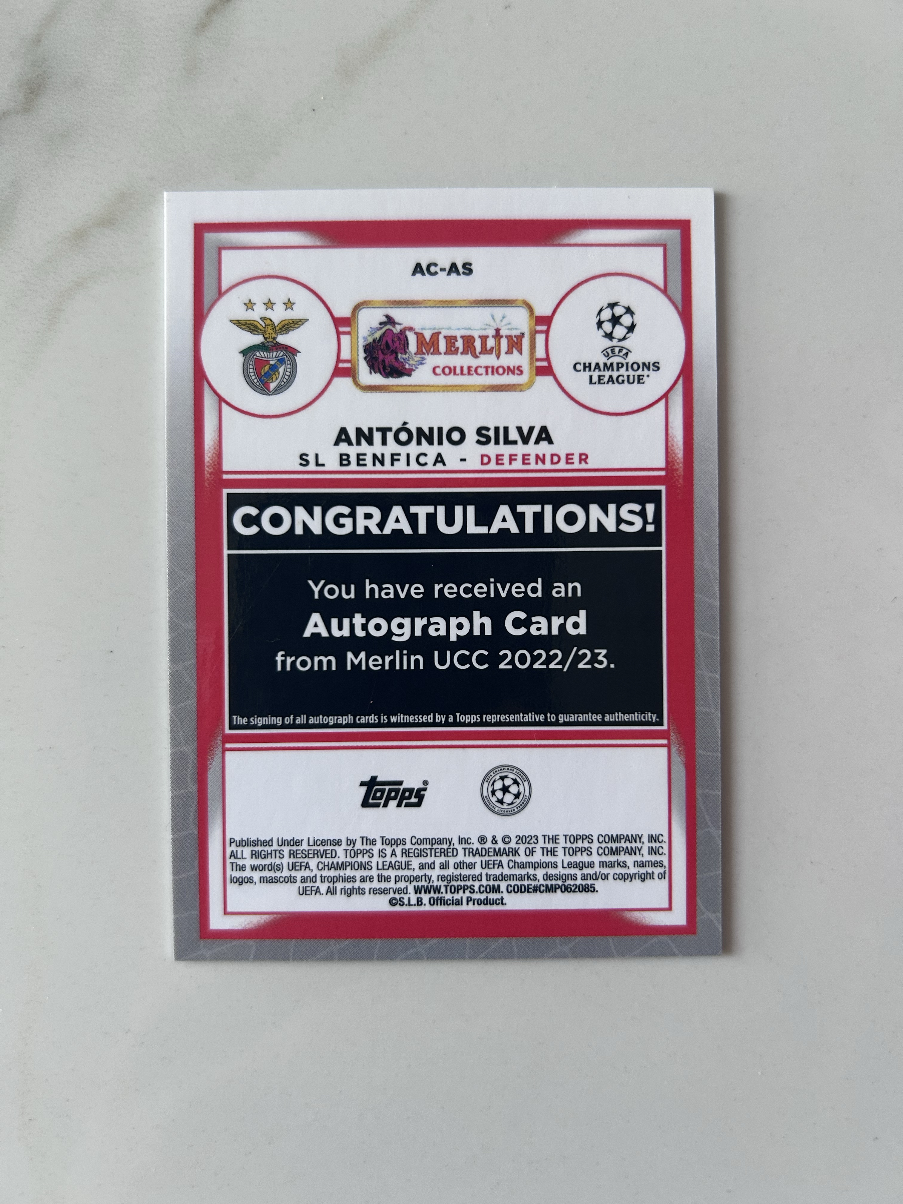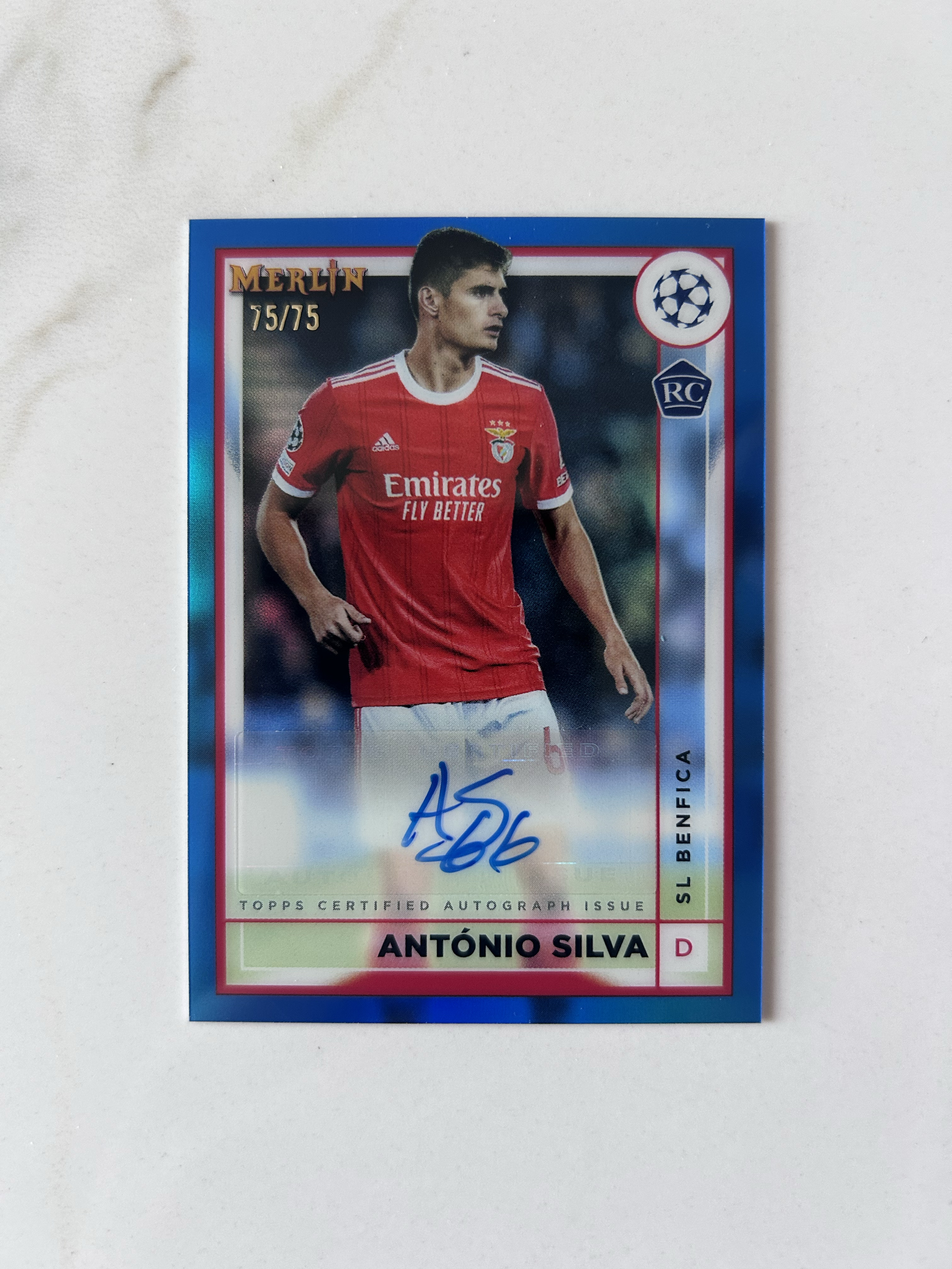 2023 Topps Merlin chrome António Silva RC 葡超本菲卡 新秀 安东尼奥·席尔瓦 75编 尾编 蓝折 签字 墨迹如图 大热 稀有 实卡精美 卡品如图 凑套收藏必入