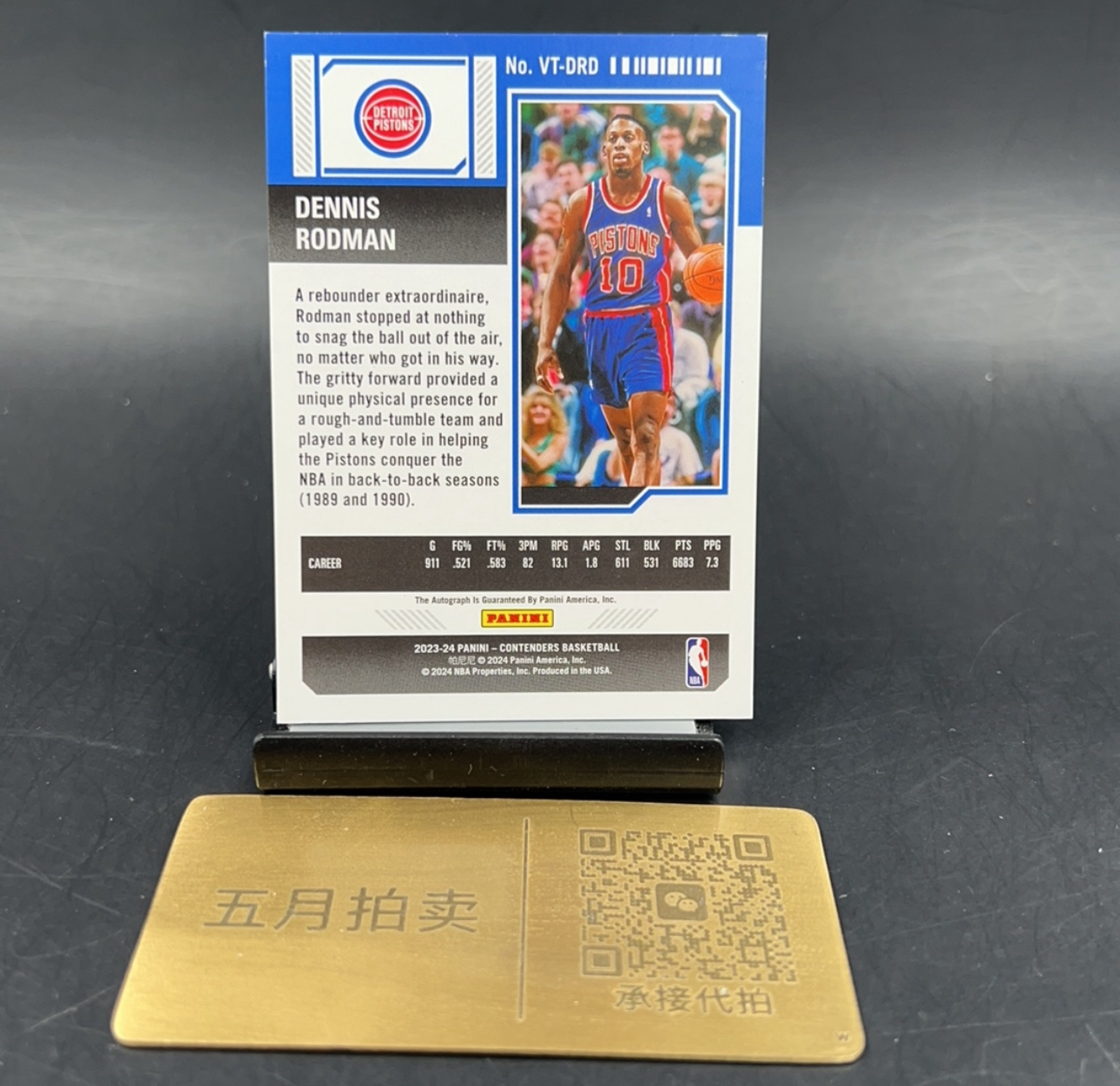 2023-24 Panini Contenders Dennis Rodman 【五月拍卖 顺丰空运】球票 丹尼斯 罗德曼 大虫 活塞 卡签 签字 银折 折射 49编 微瑕如图 呆Alex a215