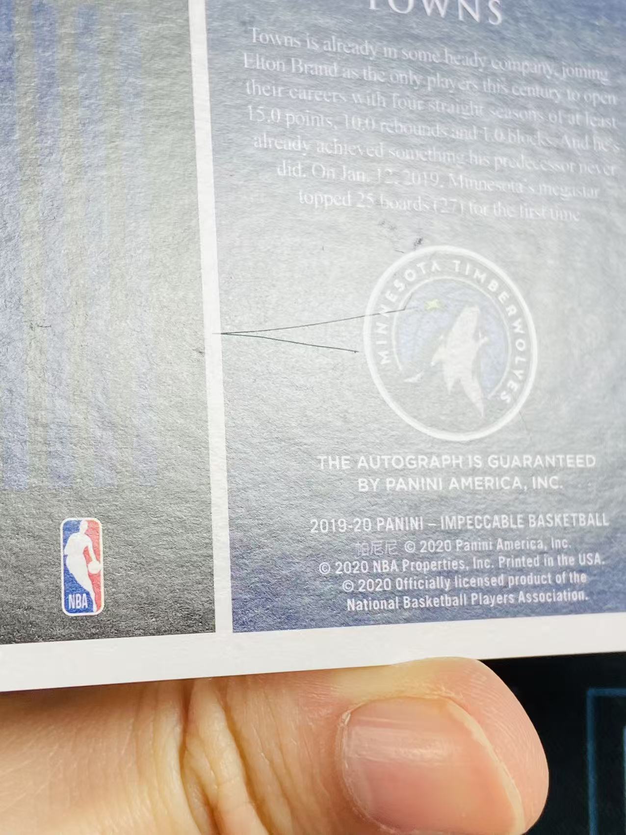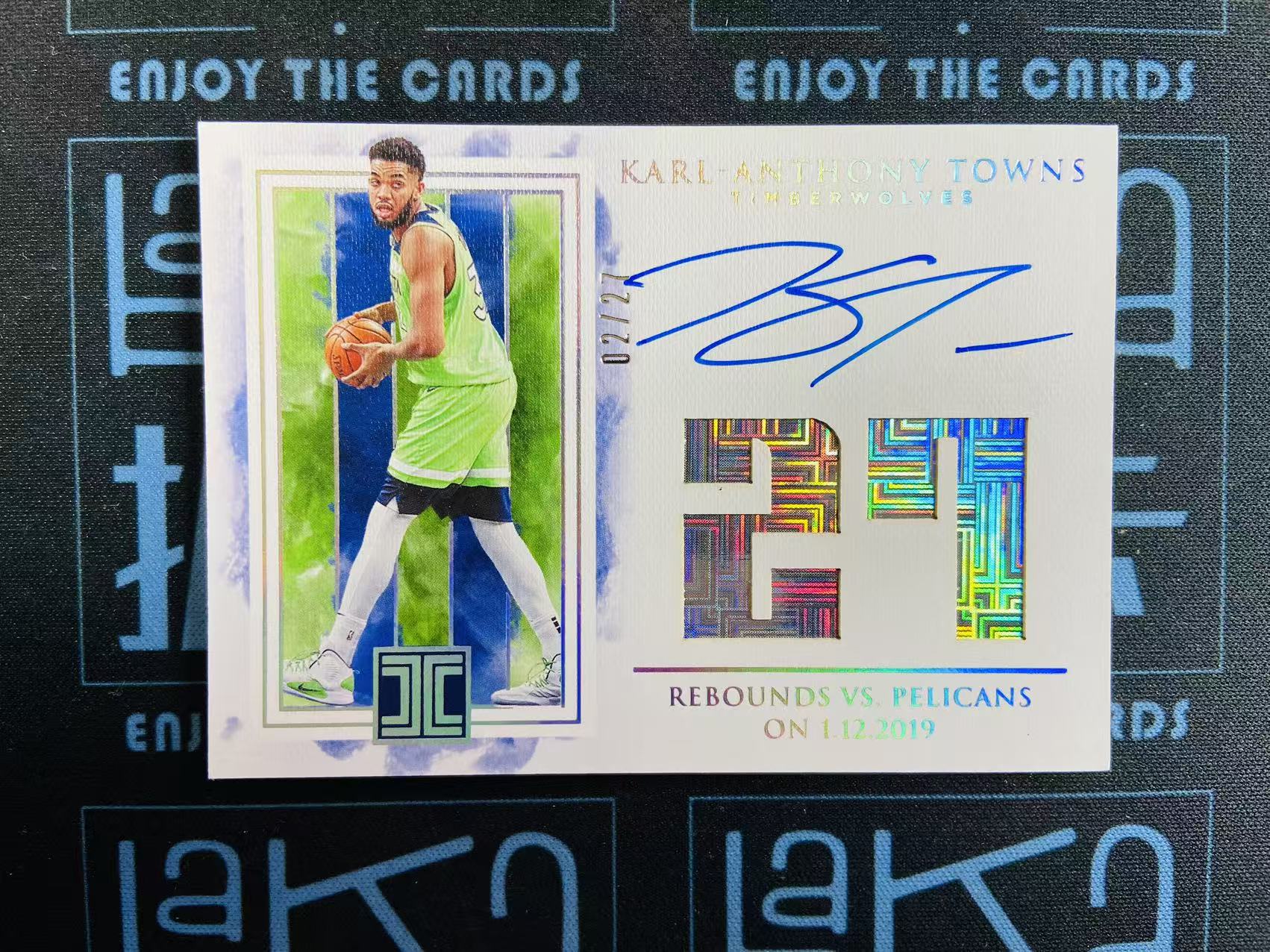 【扒卡拍卖】【拍前请看描述】2019-20 Panini Impeccable Karl-Anthony Towns 小真金 卡尔 安东尼 唐斯 森林狼 签字 卡签 /27编 数据签 最高篮板 瑕疵如图 投资收藏必备 tzt1201BK30