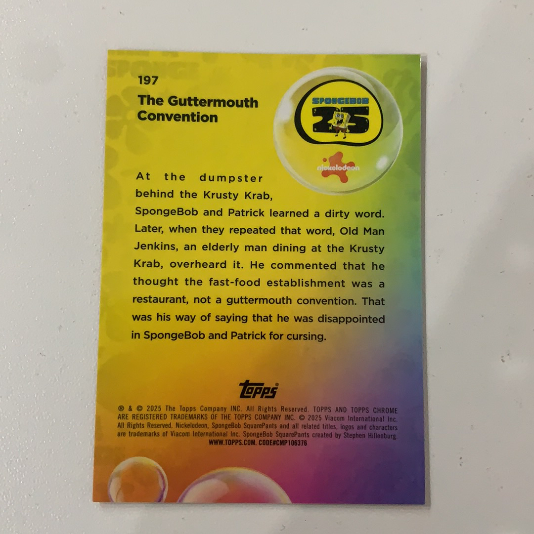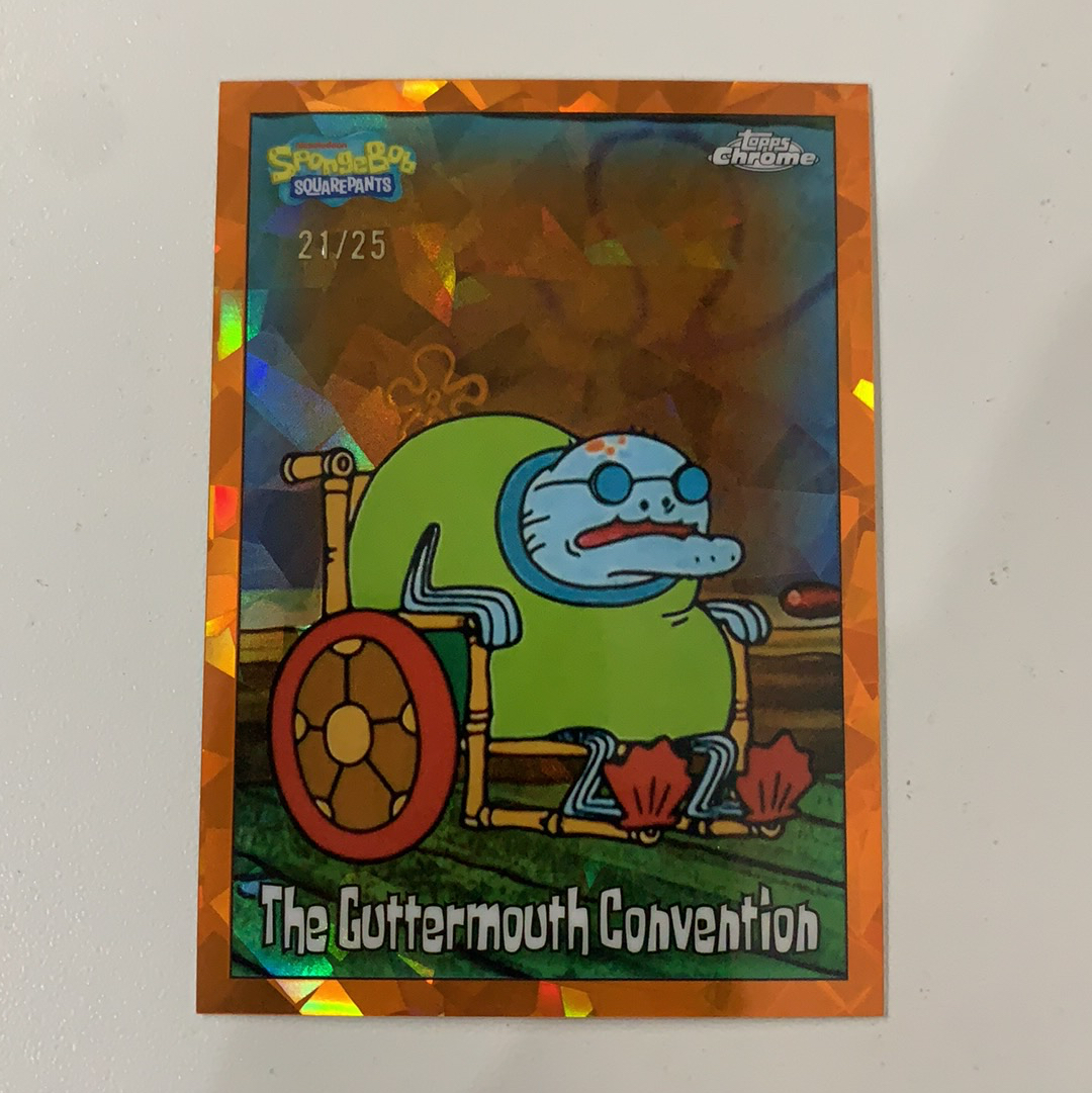 2025 Topps SpongeBob SquarePants Guttermouth Convention Chrome 海绵宝宝25周年蓝宝石 粗口大会 碎冰折 25编 橙碎冰折