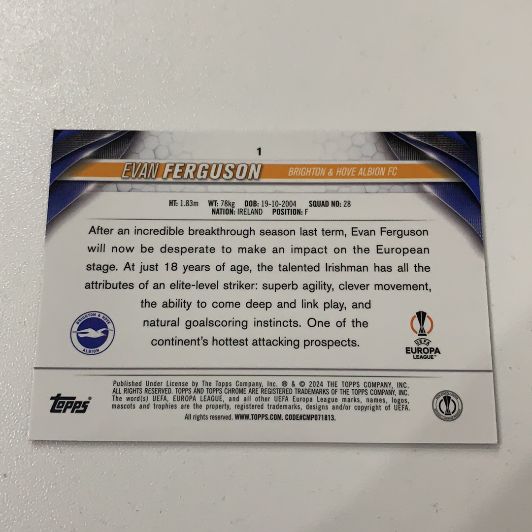 2024 Topps Chrome Evan Ferguson 欧战Topps 海鸥 布莱顿 埃文 弗格森 未来之星 粉几何折 250编 666