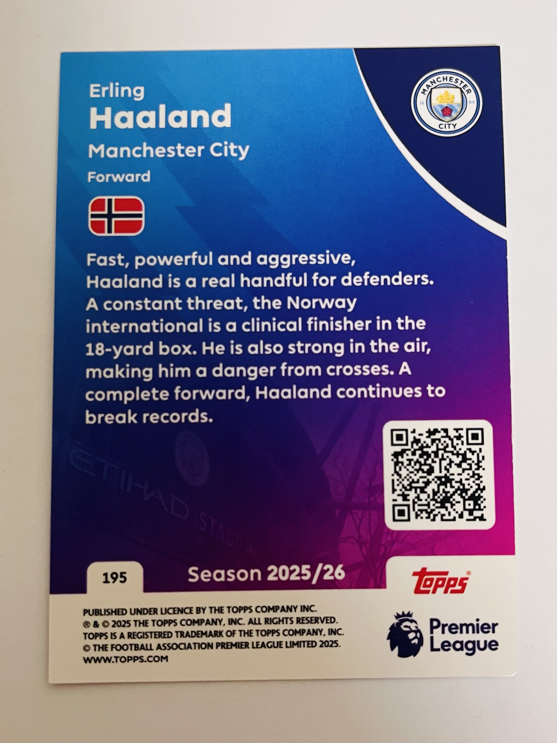 2025 Topps Finest Erling Haaland 哈兰德 曼城 挪威 RAW 世界杯 国脚 保真 亲笔 签名 签字 球星卡 卡品极佳