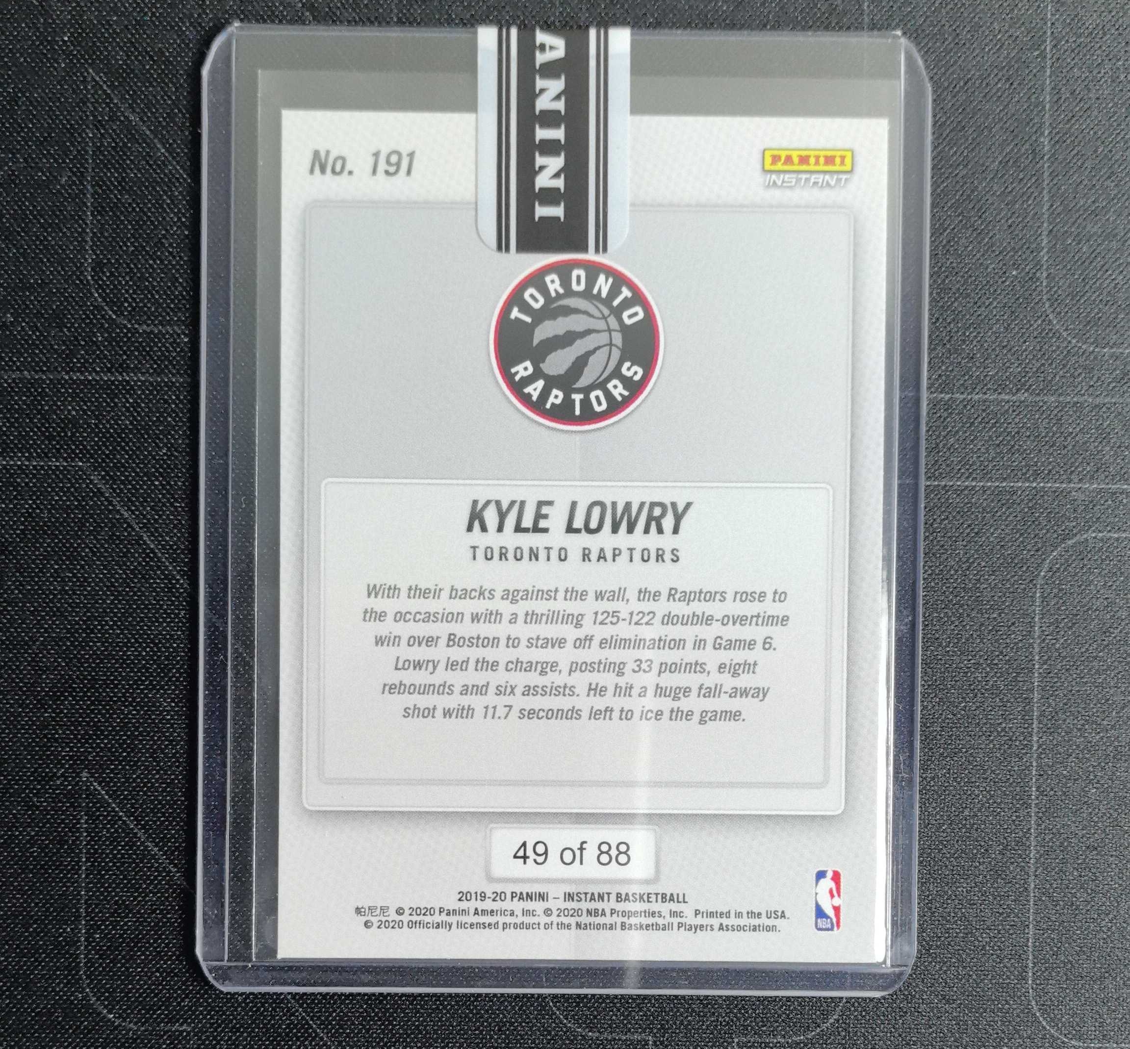 2019-20 Panini Instant Kyle Lowry 猛龙 凯尔 洛瑞 小钢炮 官方时刻 瞬时 特卡 88编 带编 原封卡夹 凑套必备 卡品如图