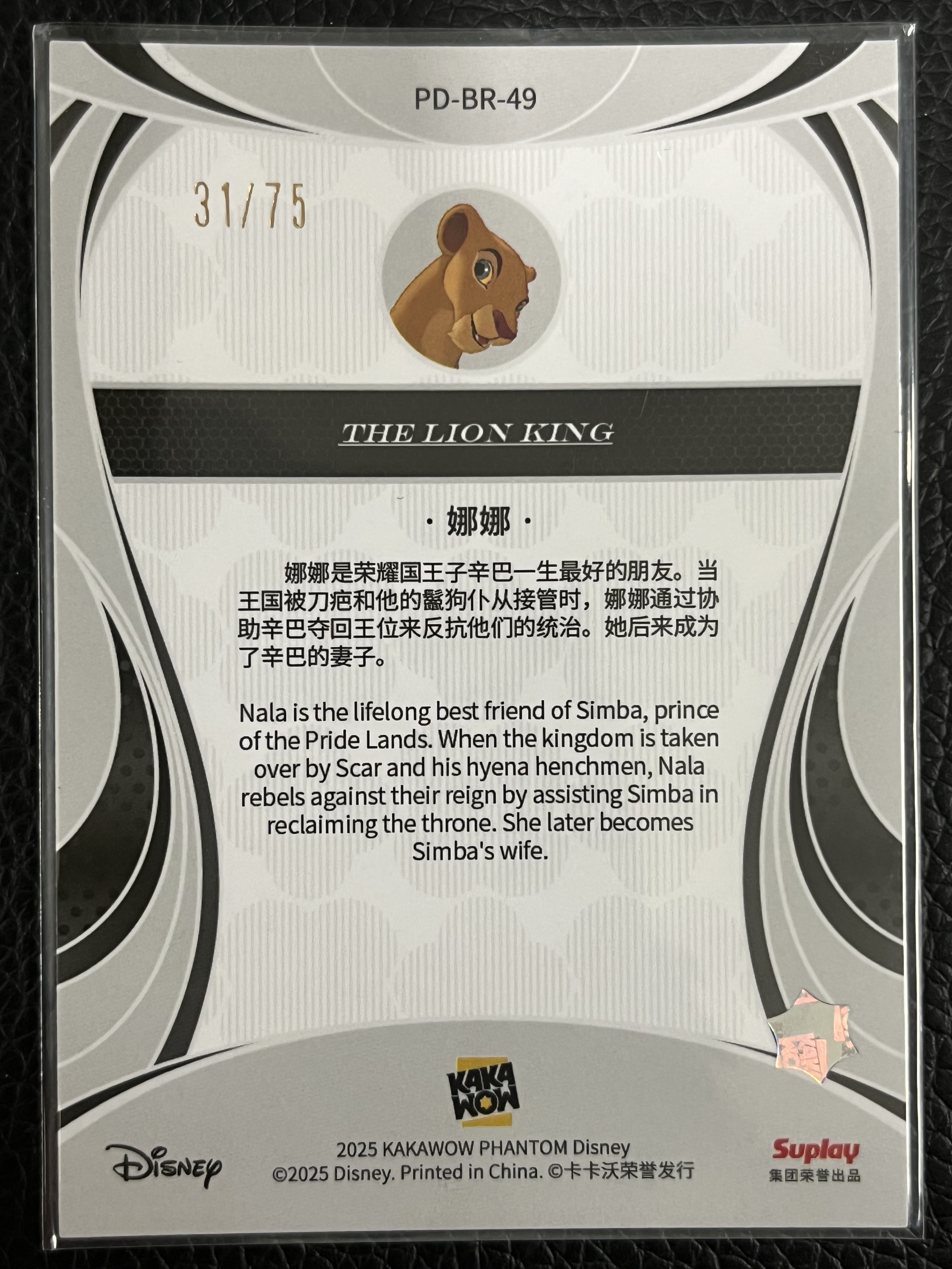 卡卡沃 2025 KAKAWOW PHANTOM 迪士尼系列收藏卡 基础卡-红 JKX白(28B)31/75编 卡号49 娜娜 Nala