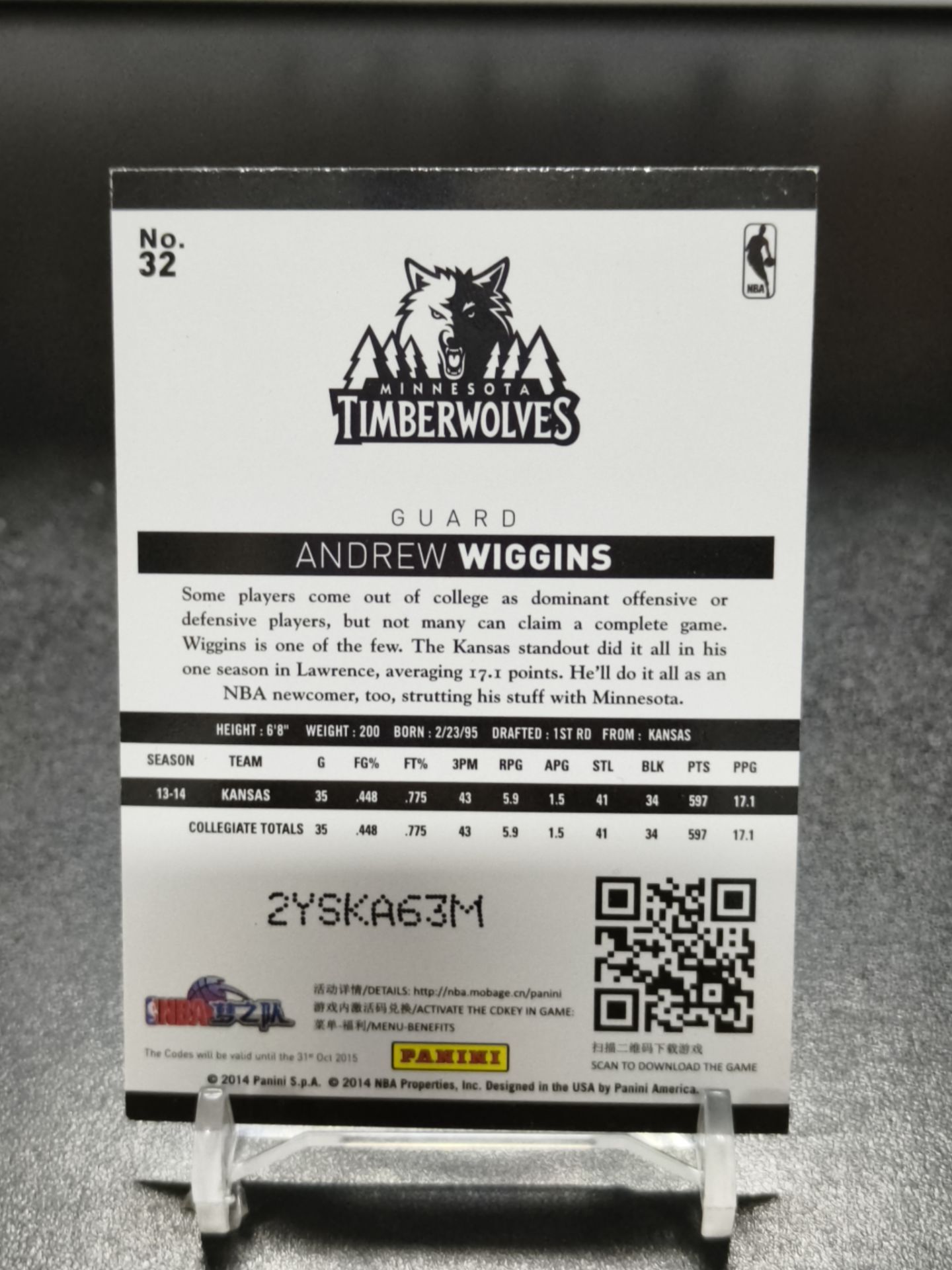 【浩行拍卖 截标预付82%】2014-15 panini nba andrew wiggins 森林狼 安德鲁 维金斯 威金斯 rc 新秀 折射 瑕疵看图 专收必备「纪忙」1128K02劉