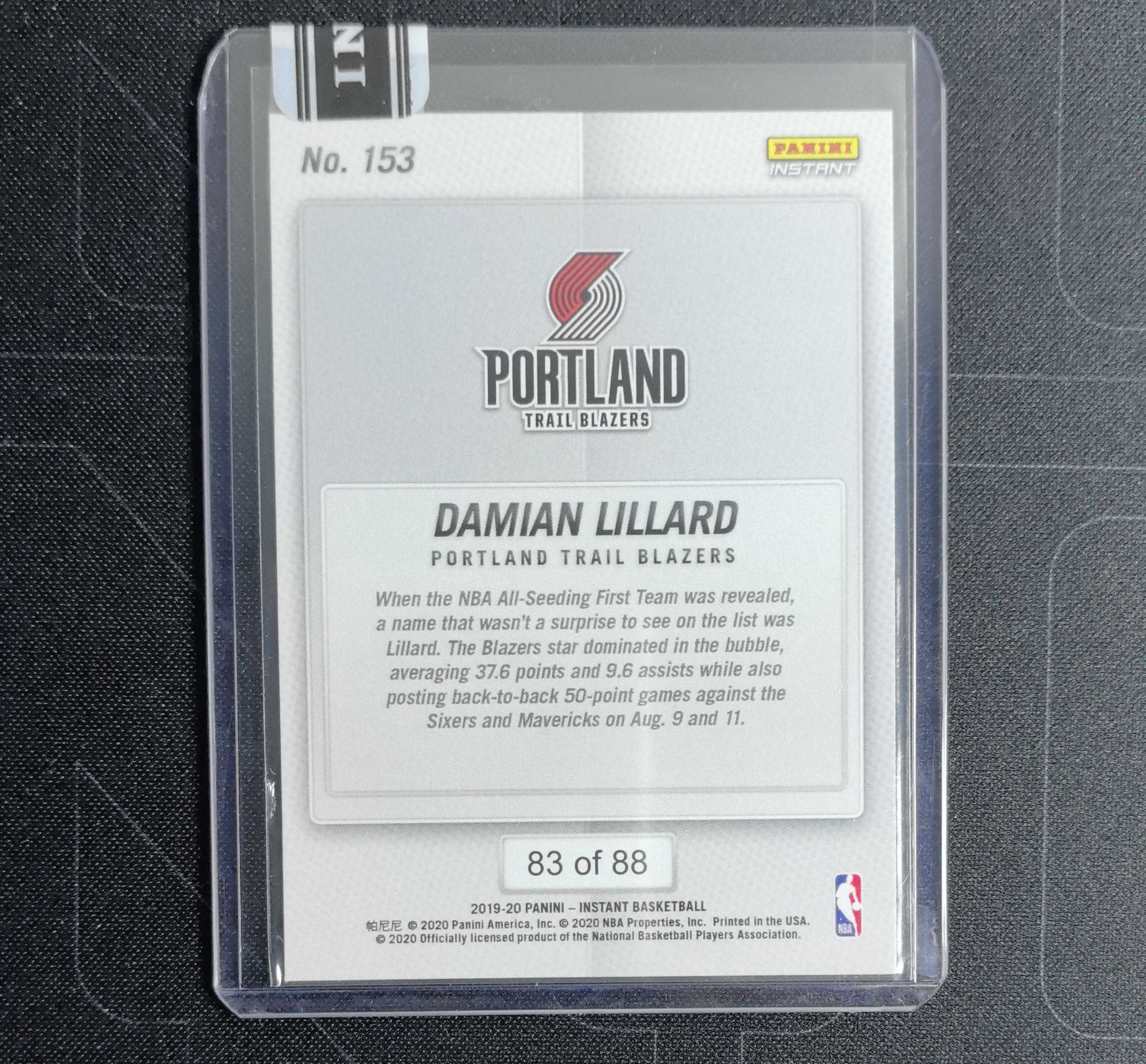 2019-20 Panini Instant Damian Lillard 开拓者 达米安 利拉德 官方时刻 瞬时 特卡 88编 带编 原封卡夹 凑套必备 卡品如图
