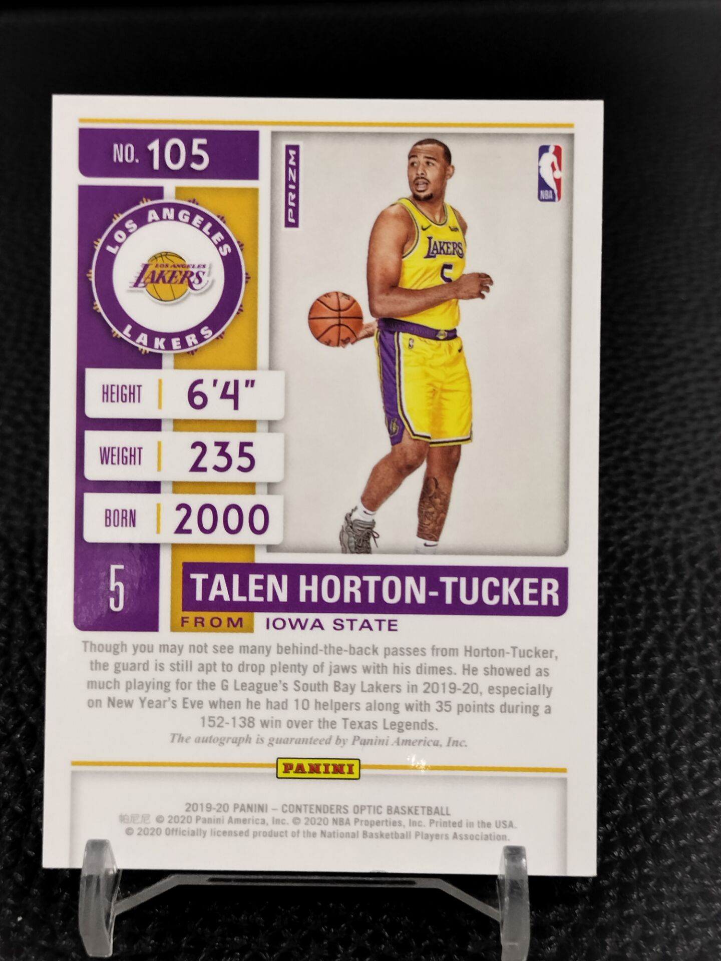 【浩行拍卖 截标预付82%】2019-20 panini contenders optic talen horton tucker 球票 湖人 塔伦 霍顿 塔克 新秀 rc 银折 折射 签字 卡签 专收必备 瑕疵看图「美肌」1128h02飛