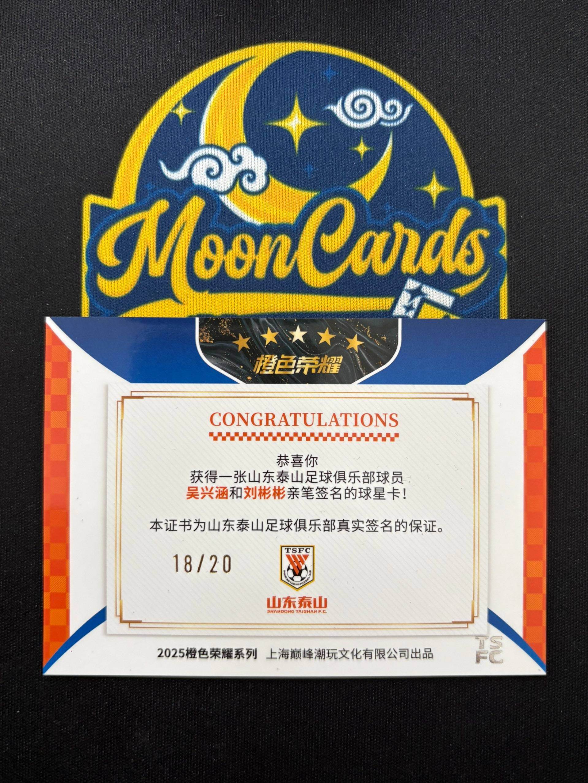 【梦卡拍卖】2025 巅峰潮玩 橙色荣耀 泰山队盒 山东鲁能 吴兴涵 刘彬彬 双人 签字 卡签 双签 18/20编 #DD# 乐哥