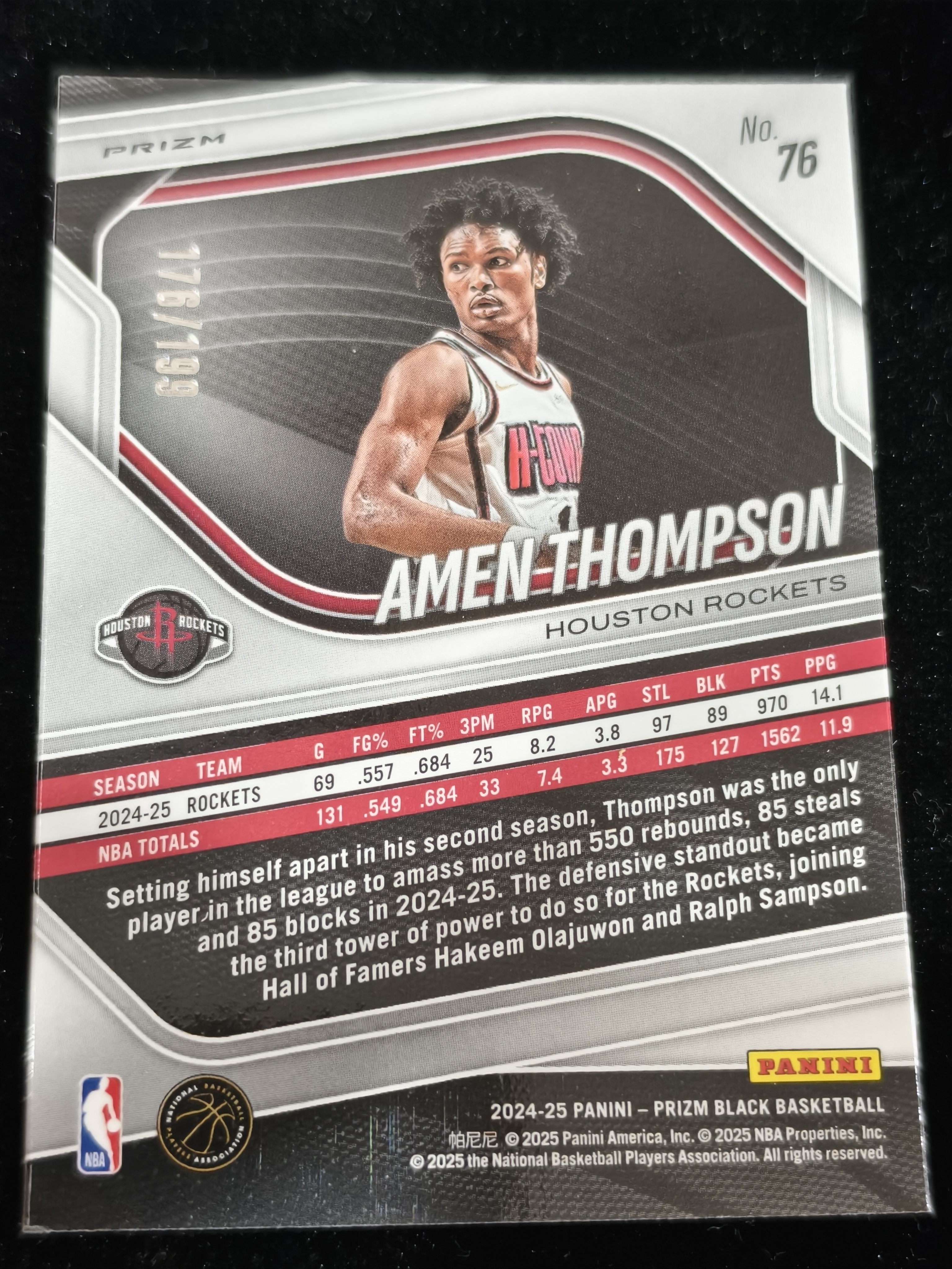 2024-25 Panini Prizm Black Amen Thompson 火箭 阿门 汤普森 176/199编 蓝折 折射 卡品如图 机长代拍 zhq