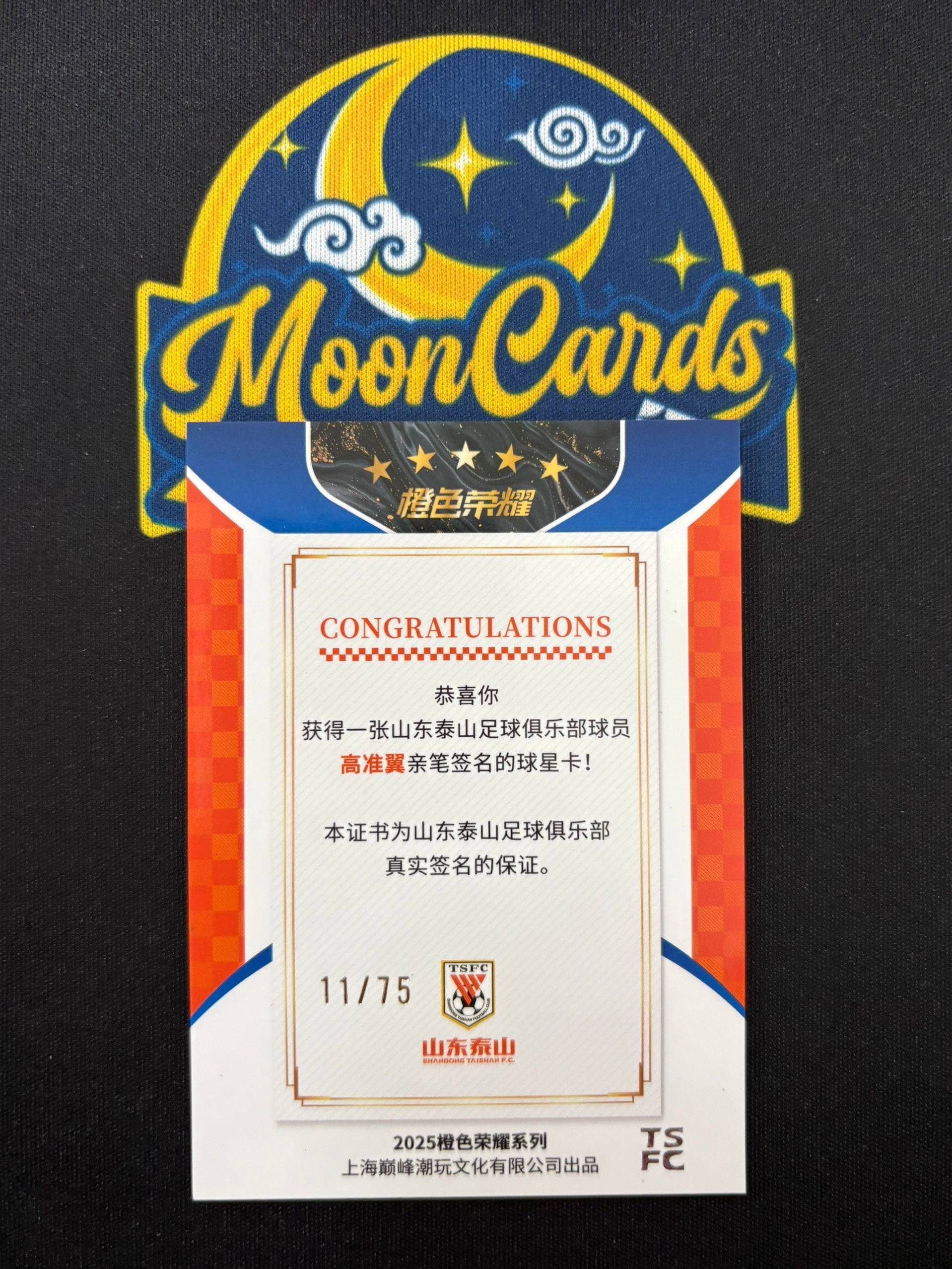 【梦卡拍卖】2025 巅峰潮玩 橙色荣耀 泰山队盒 山东鲁能 高准翼 签字 卡签 11/75编 #DD# 乐哥