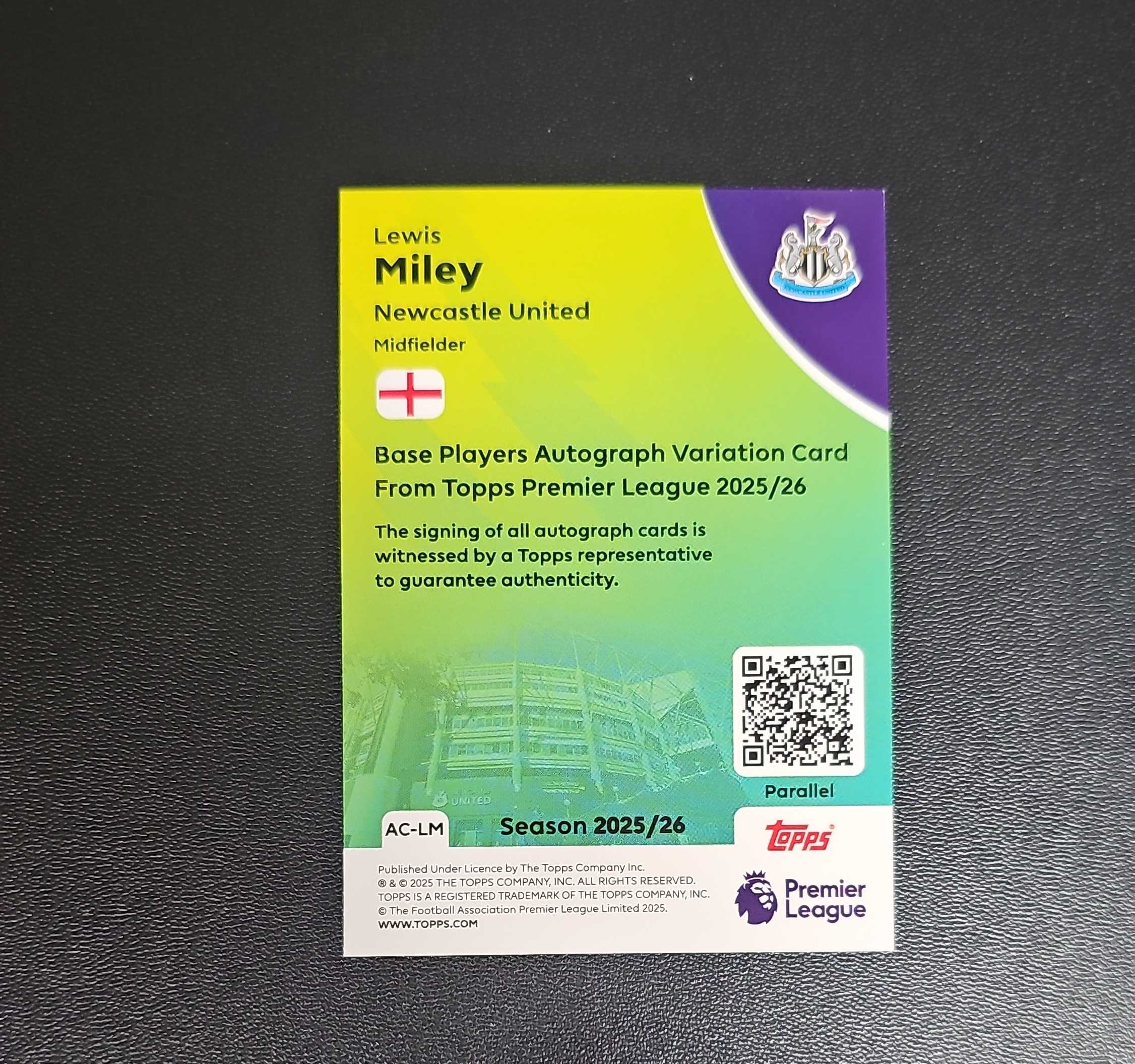 2025-26 Topps Premier Lewis Miley 【幻想代拍】纽卡斯尔 刘易斯 麦利 米利 04/25编 橙碎点折 签字 超低编 实卡精美 收藏必备