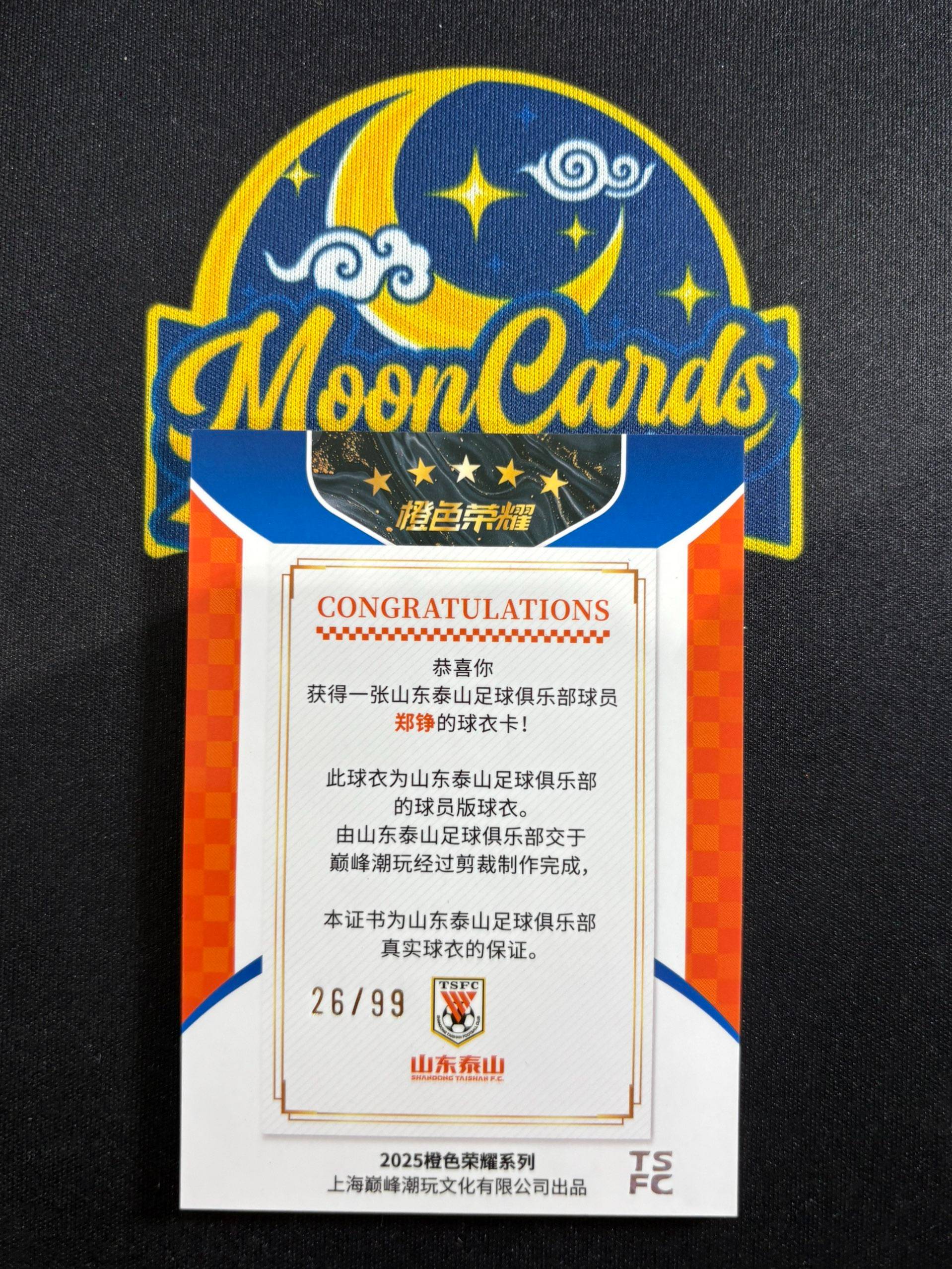 【梦卡拍卖】2025 巅峰潮玩 橙色荣耀 泰山队盒 山东鲁能 郑铮 球衣切割 物料 26/99编 #DD# 乐哥