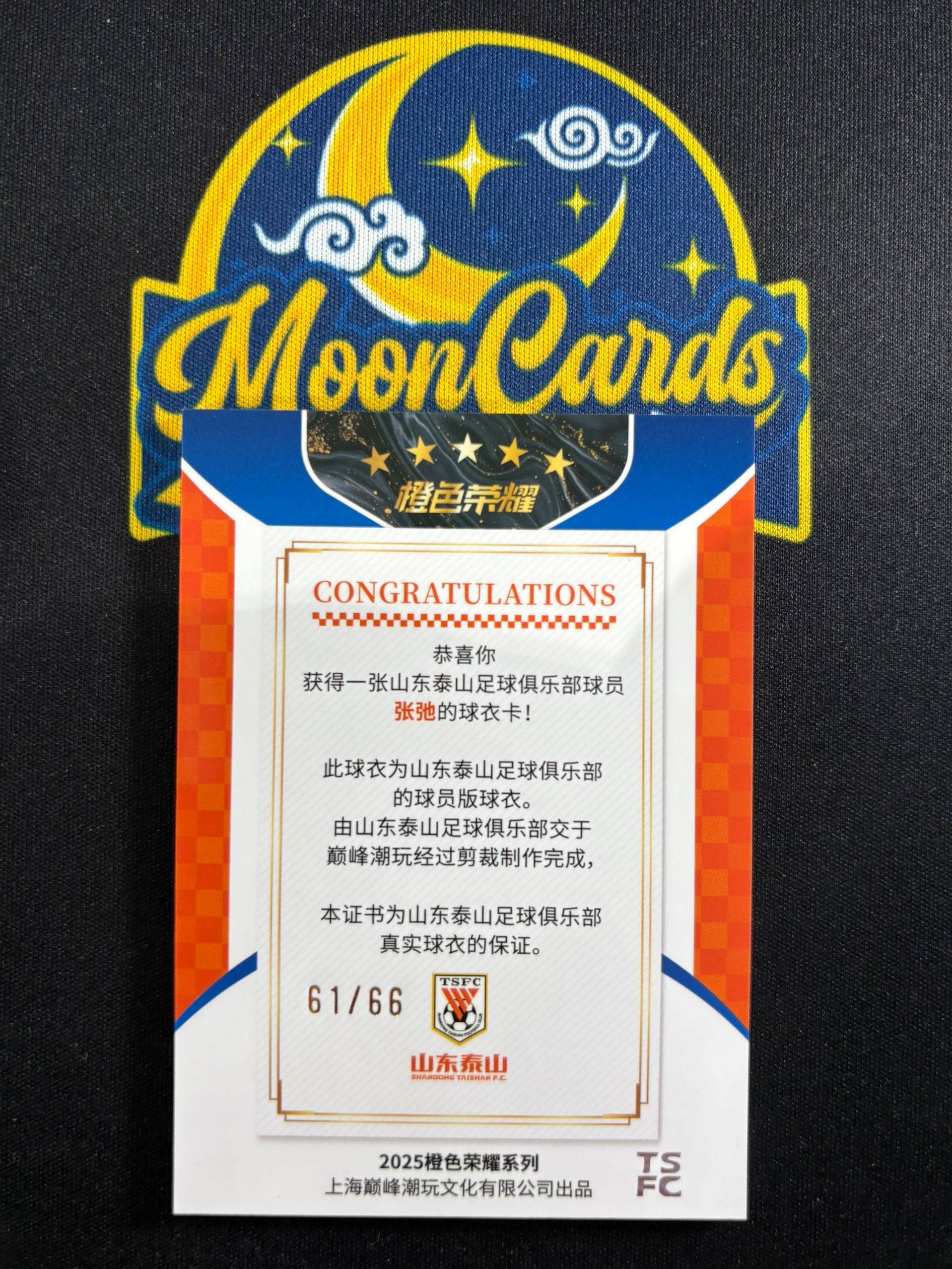 【梦卡拍卖】2025 巅峰潮玩 橙色荣耀 泰山队盒 山东鲁能 张弛 球衣切割 物料 双色 61/66编 #DD# 乐哥