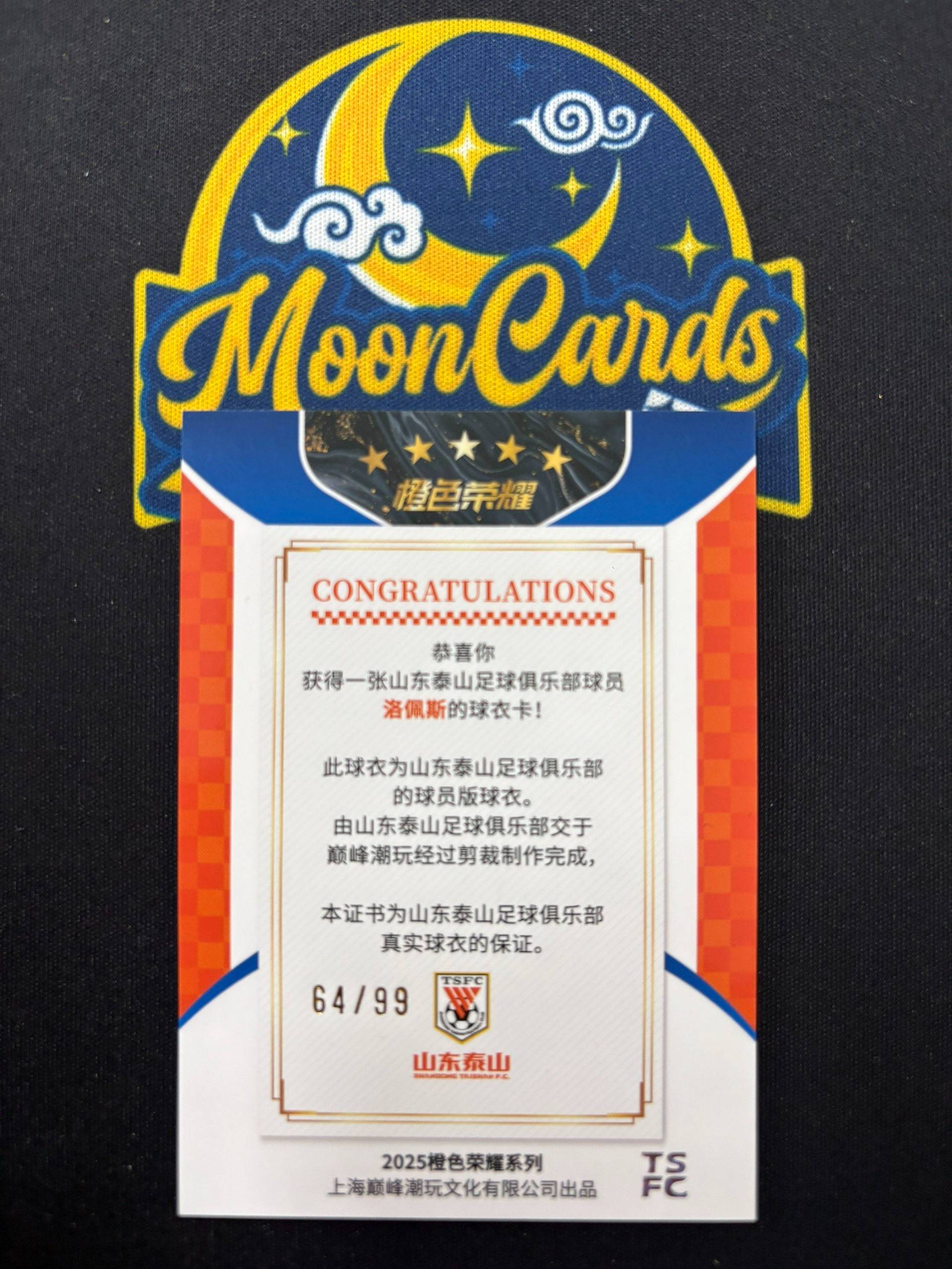 【梦卡拍卖】2025 巅峰潮玩 橙色荣耀 泰山队盒 山东鲁能 洛佩斯 球衣切割 物料 64/99编 #DD# A02