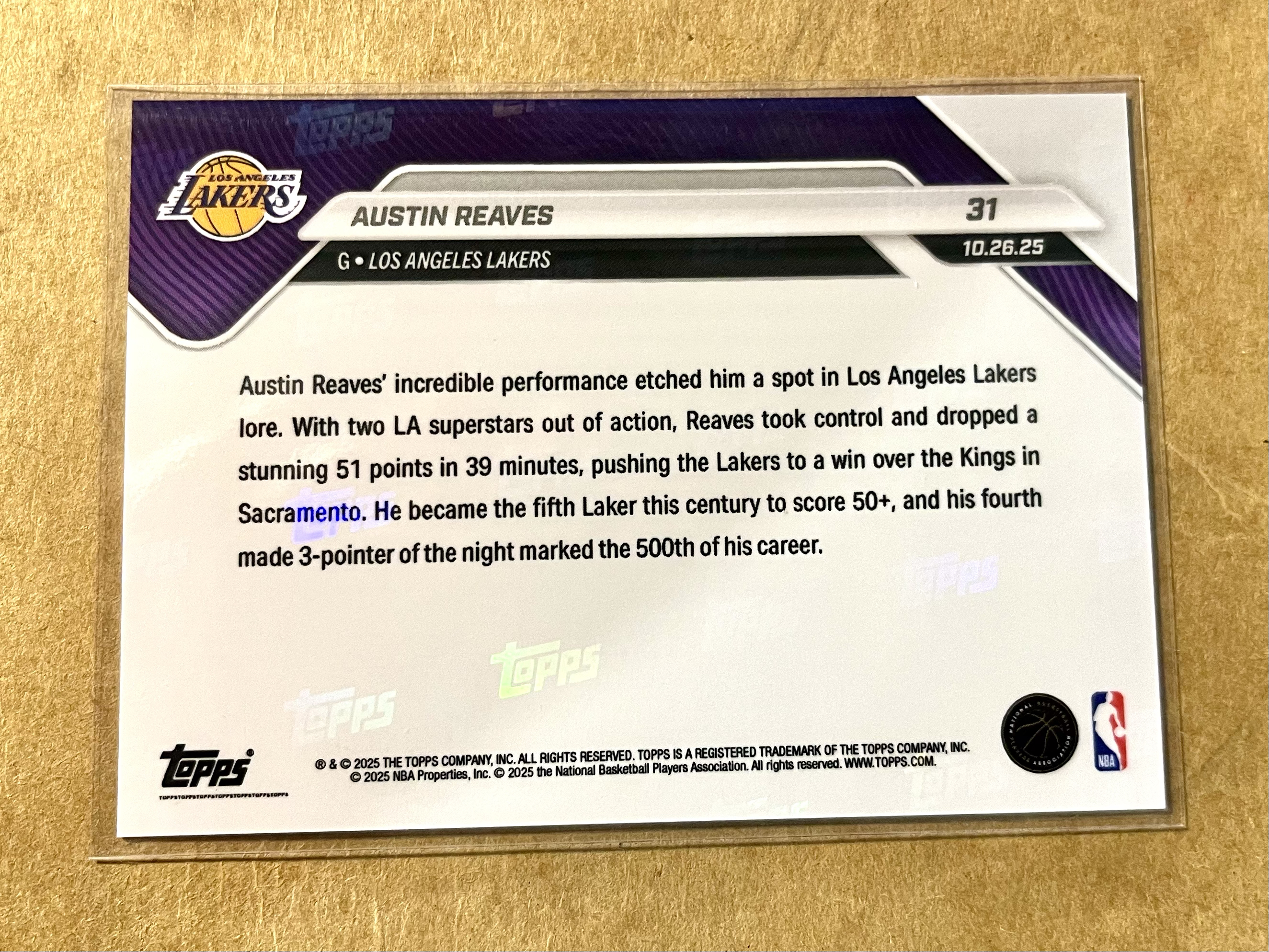2025 Topps 【蓝矿】 Austin Rivers 奥斯汀·里弗斯 Topps now系列 2025NBA常规赛 湖人 掌管比赛!本世纪第五位单场得分超50分的湖人球员!
