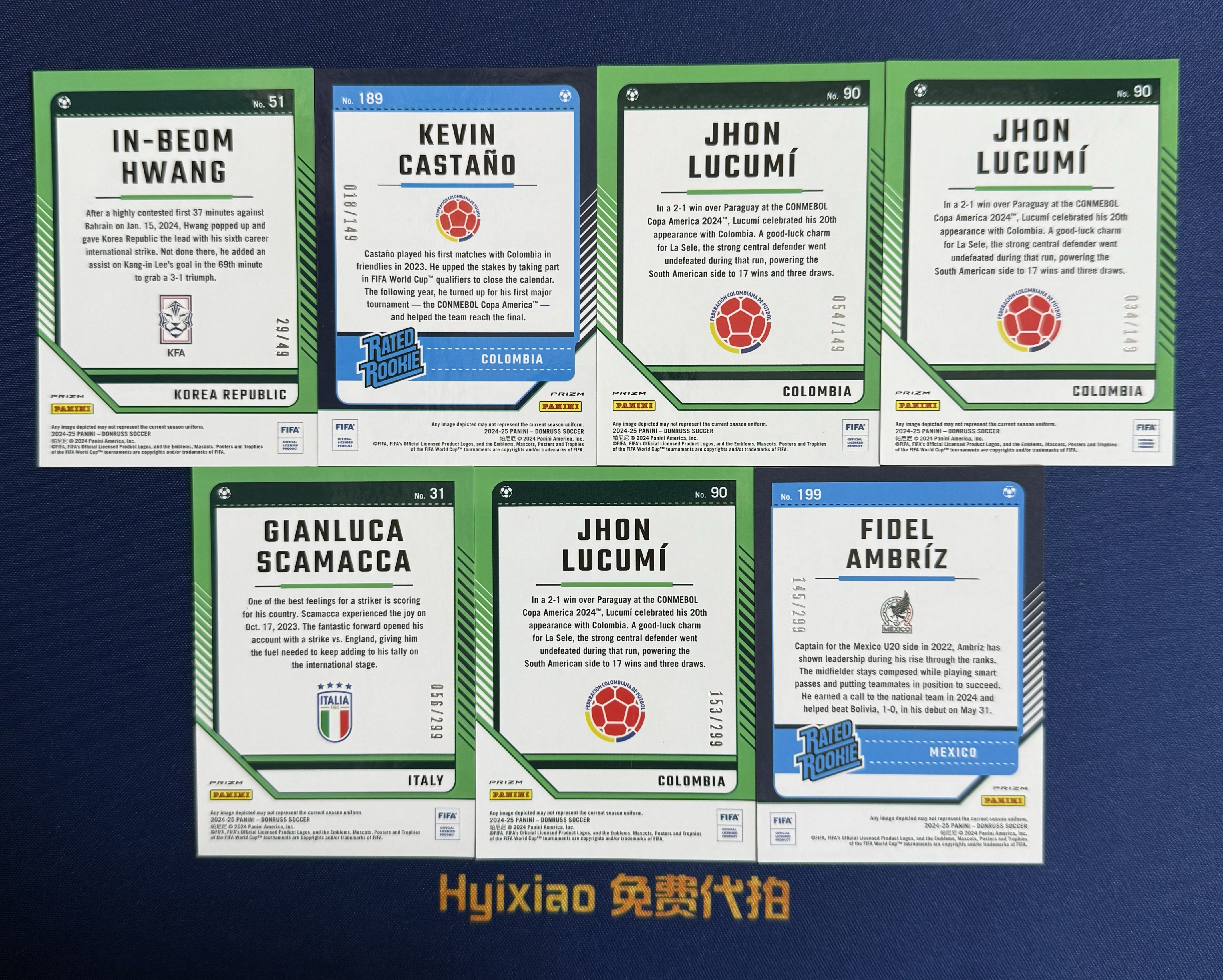 2024-25 Panini Donruss Fifa 黄仁范 卡斯塔尼奥 卢库米 安布里兹 斯卡马卡 意大利 哥伦比亚 韩国 墨西哥 299编 149编 49编 折射 lot 不保卡品 jx11