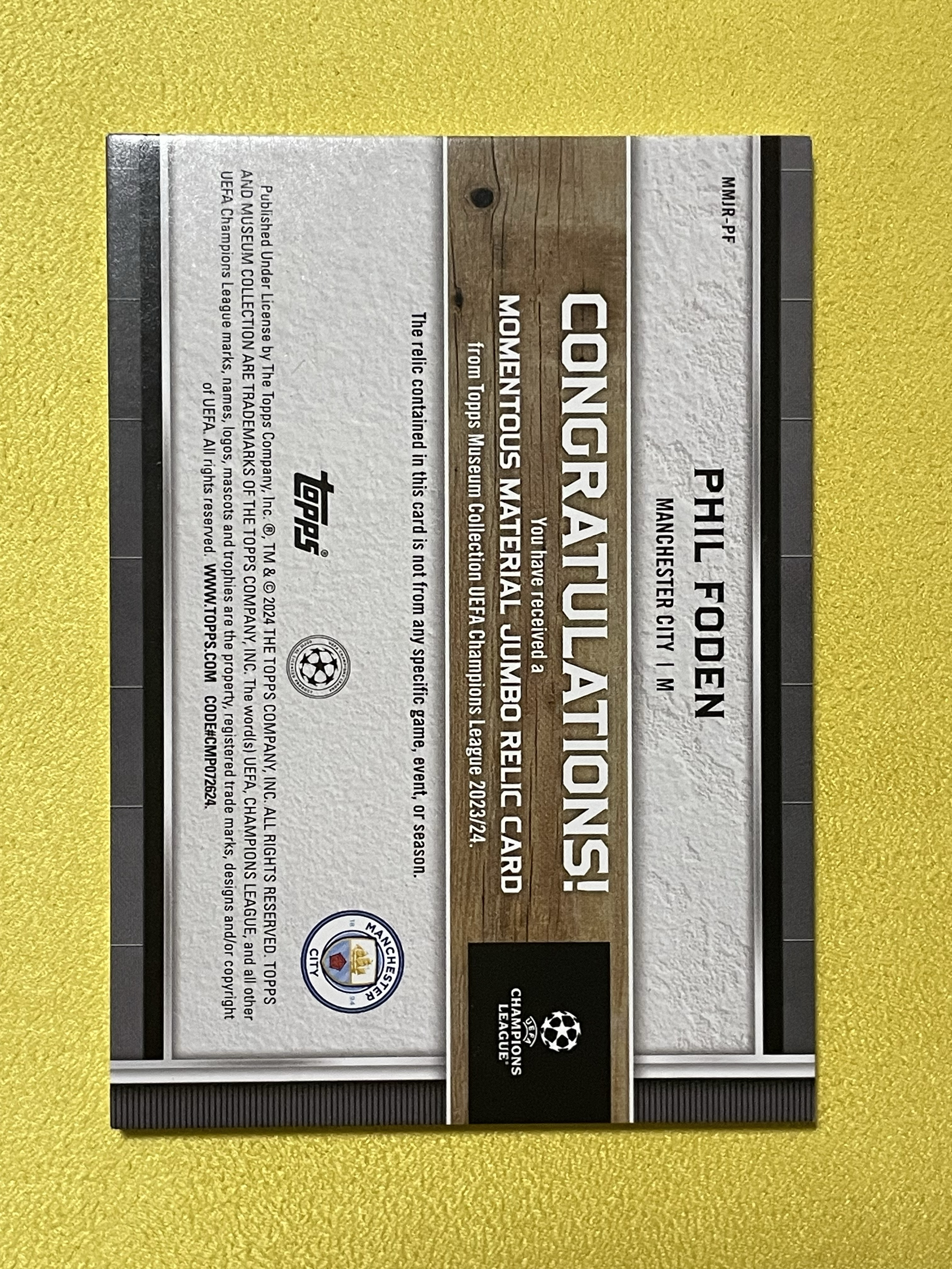 2024 Topps museum Phil Foden MC 欧冠 博物馆 福登 曼城 25编 蓝月军团 英格兰 太子 patch物料暴力切割 折射 卡品如图 收藏必备