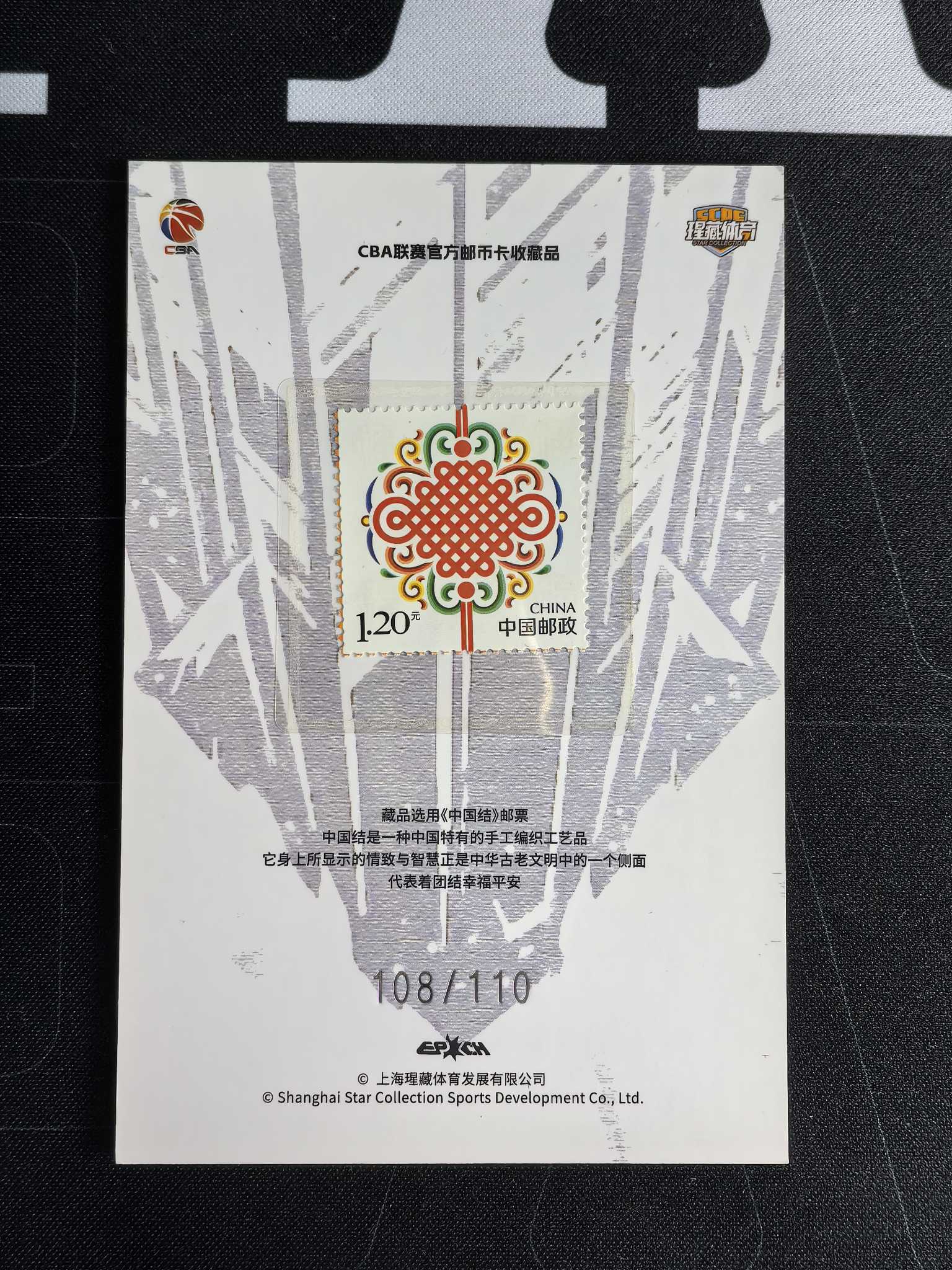 2023 上海瑆藏体育 纪元系列 姜伟泽 大卡 大尺寸 中国结 邮票 110编 带编 CBA联赛官方邮币卡收藏品 中国男子篮球职业联赛