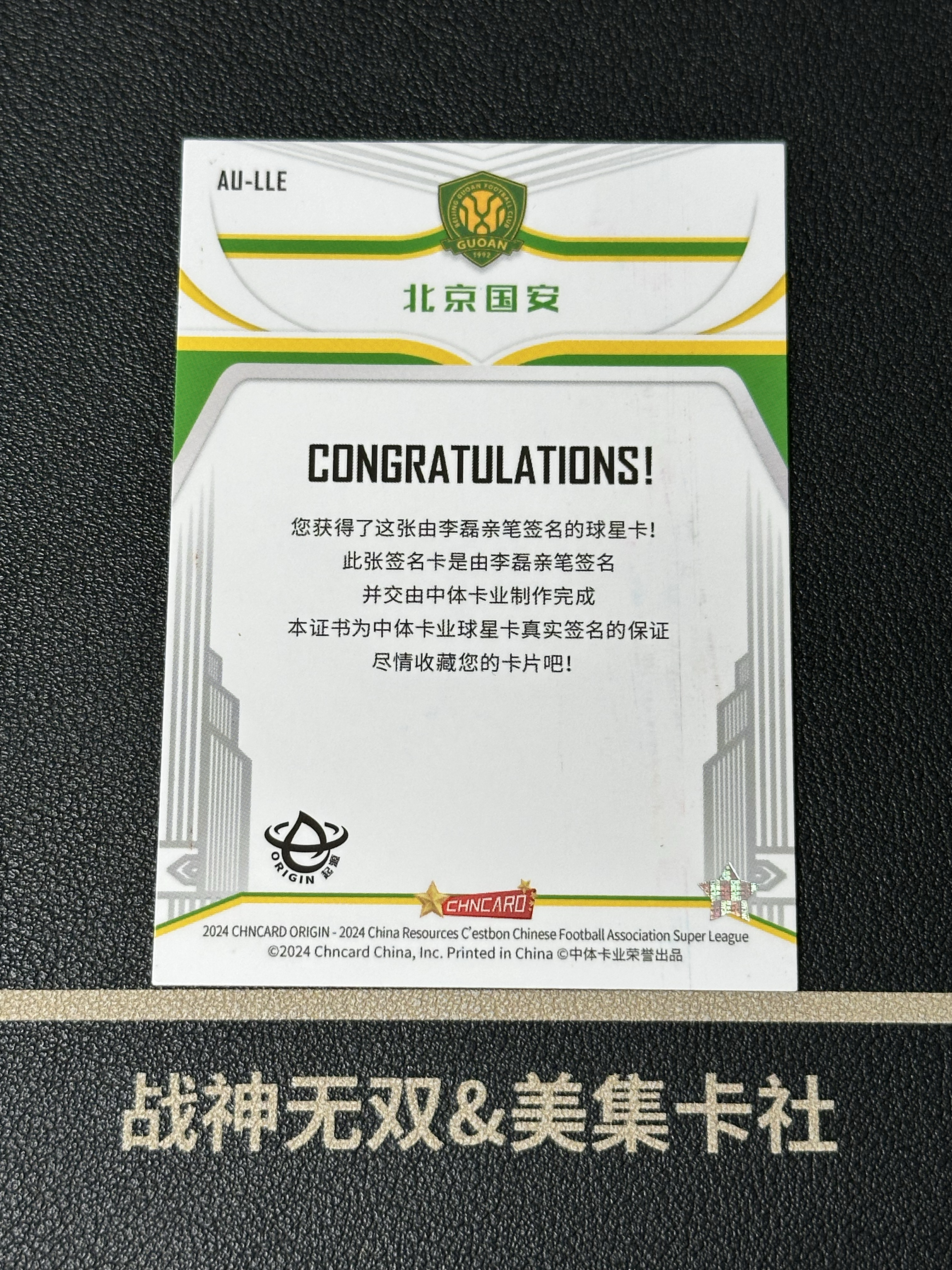 2024 中体卡业 中超起源系列 签字卡 北京国安 李磊 银折 字迹完美 战神无双(#魔笛)