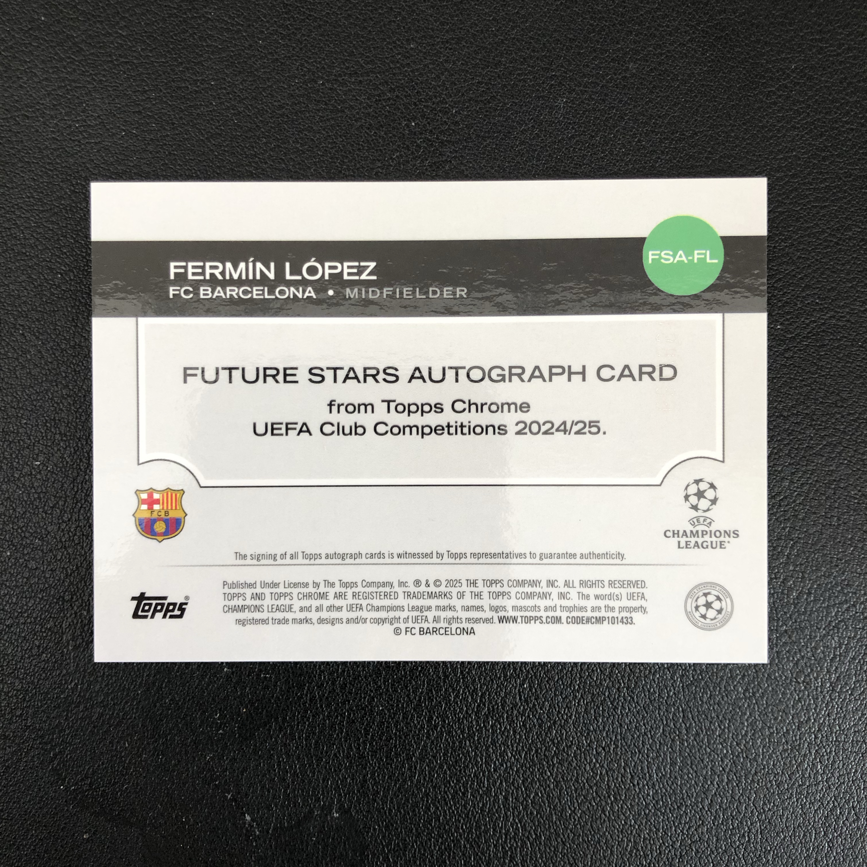 2025 topps chrome 欧冠 巴塞罗那 费尔明洛佩兹 Fermin Lopez 西班牙 签字 198/199编 青折 未来之星特卡 卡品如图 默认微瑕 收藏必备(wzx)