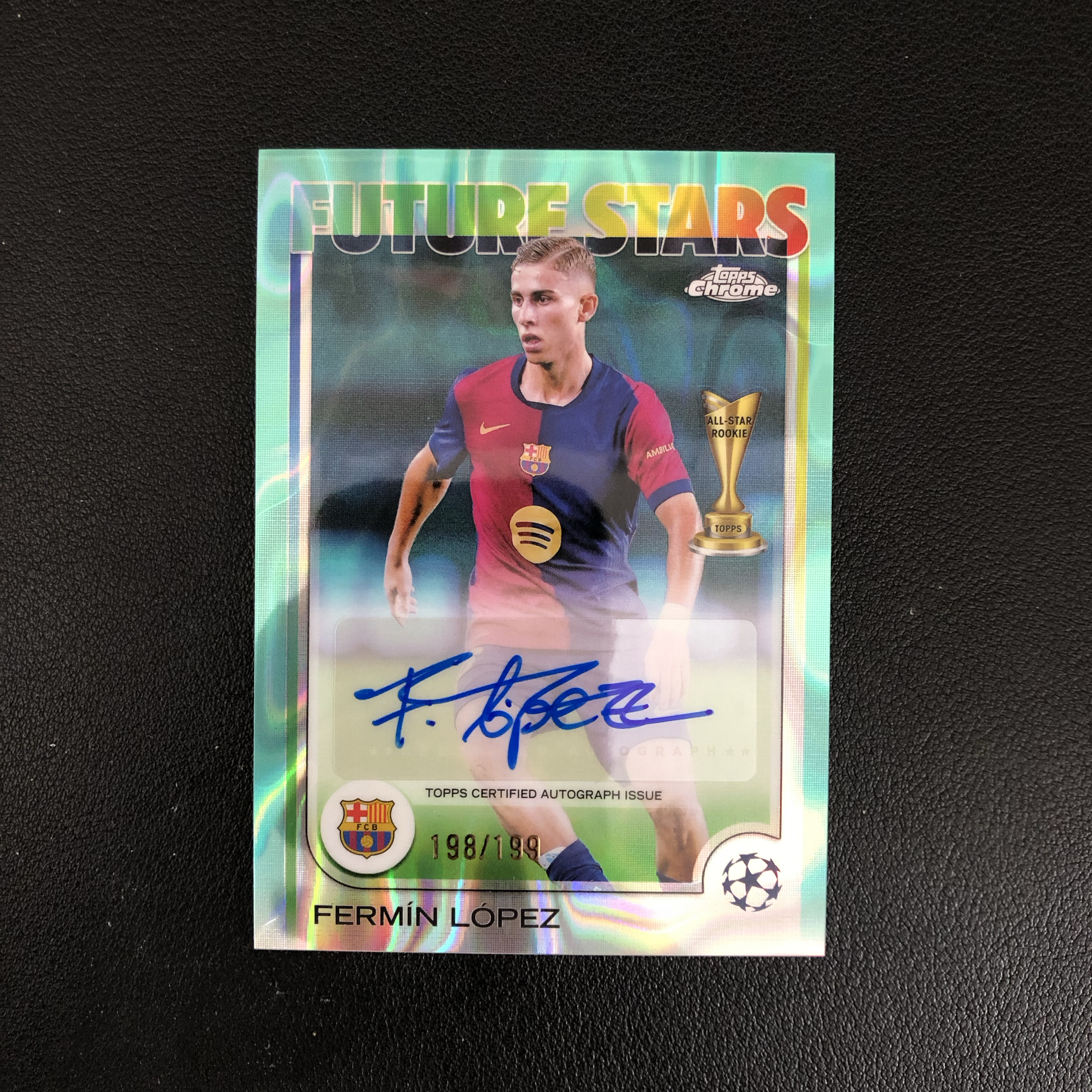 2025 topps chrome 欧冠 巴塞罗那 费尔明洛佩兹 Fermin Lopez  西班牙 签字 198/199编 青折 未来之星特卡 卡品如图 默认微瑕 收藏必备(wzx)