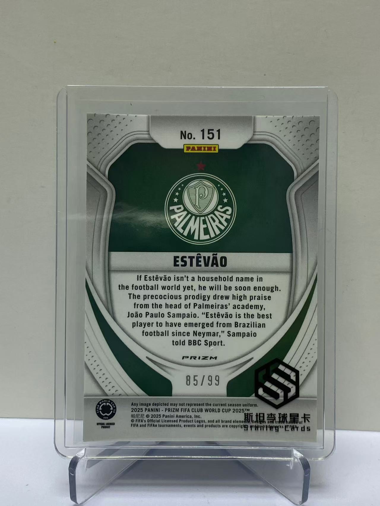 2025 Panini Prizm Estevao 世俱杯PZ 埃斯特旺 巴西 切尔西 帕尔梅拉斯 青折 85/99编 收藏必备 卡品如图 9527