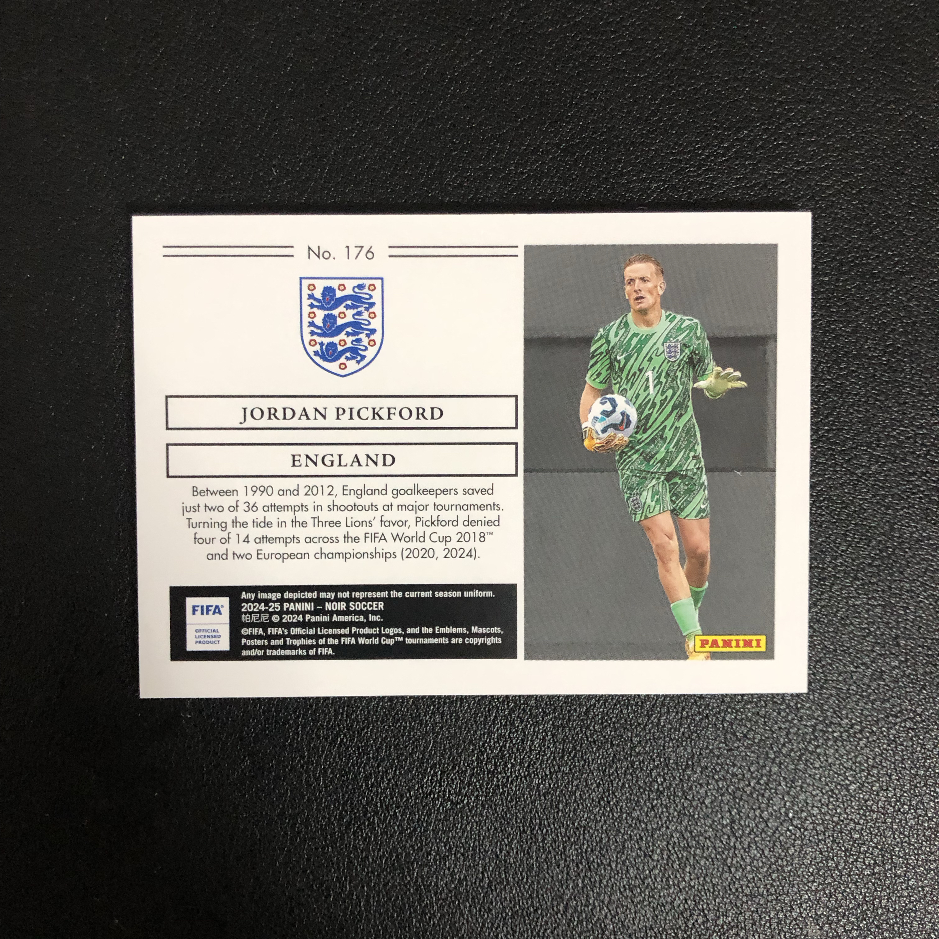 2024-25 Panini Noir 诺尔 JORDAN PICKFORD 英格兰 乔丹 皮克福德 18/49编 银折 横版base 莱斯特城 微痕边角微白(wzx)