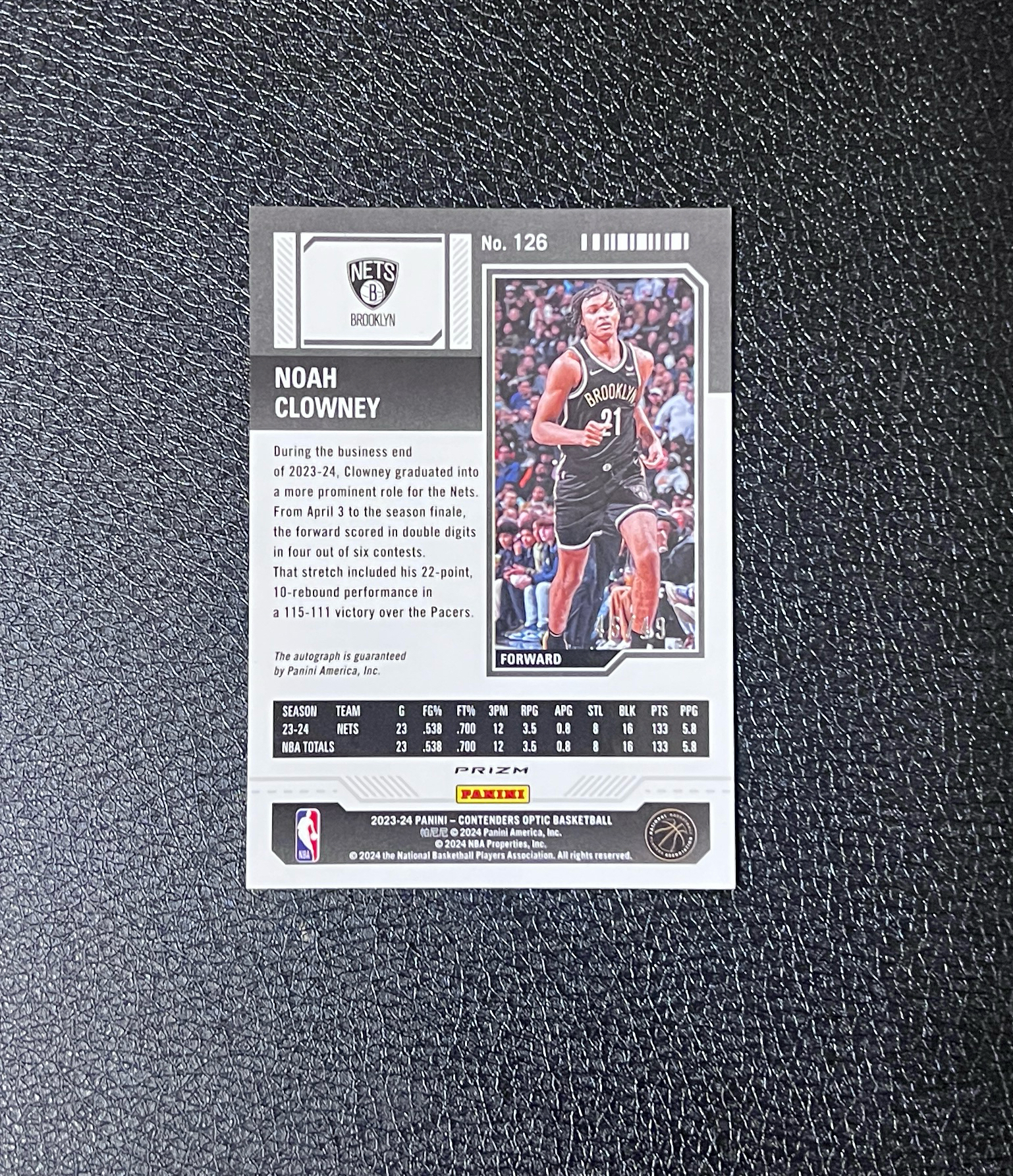 2023-24 Panini Contenders Optic Noah Clowney RC 诺阿 克洛尼 克劳尼 rc 新秀 球票 签字 卡签 49编 蓝折 墨迹完美卡品如图篮网太子小加内特