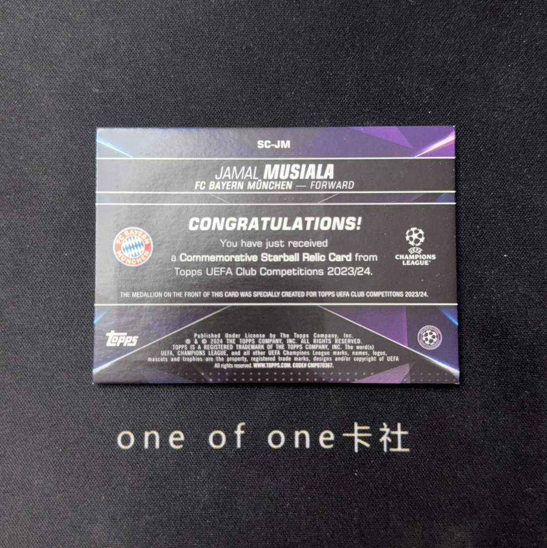 2024 Topps UCC Jamal Musiala 欧冠 拜仁慕尼黑 穆夏拉 穆西亚拉 欧冠标志 铁块 实物物料 白边白角 卡品如图