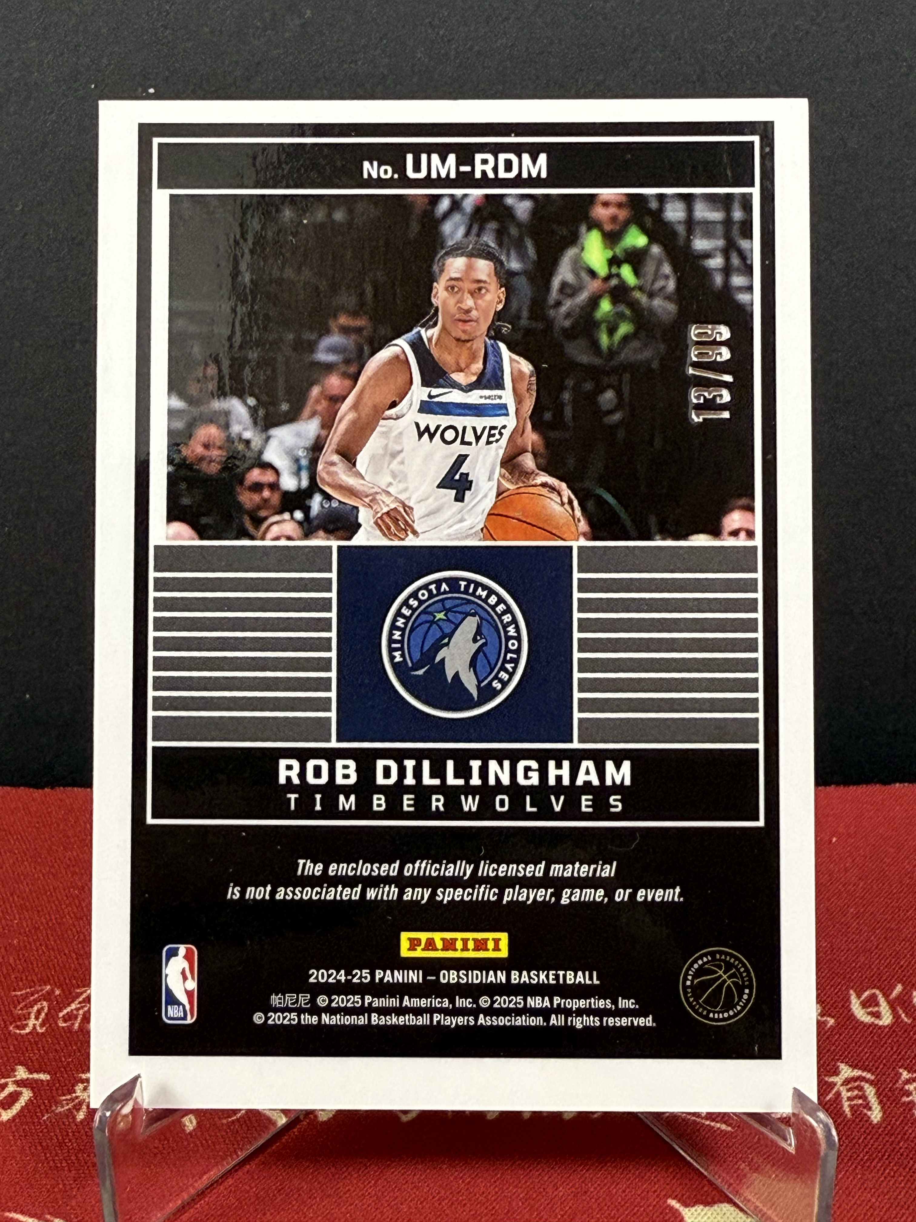 2024-25 PANINI Obsidian ROB DILLINGHAM RC 森林狼 罗伯 迪林厄姆 橙折 新秀球衣物料PATCH暴力切割 13/99编 卡品如图 收藏必备 未来可期 aj总
